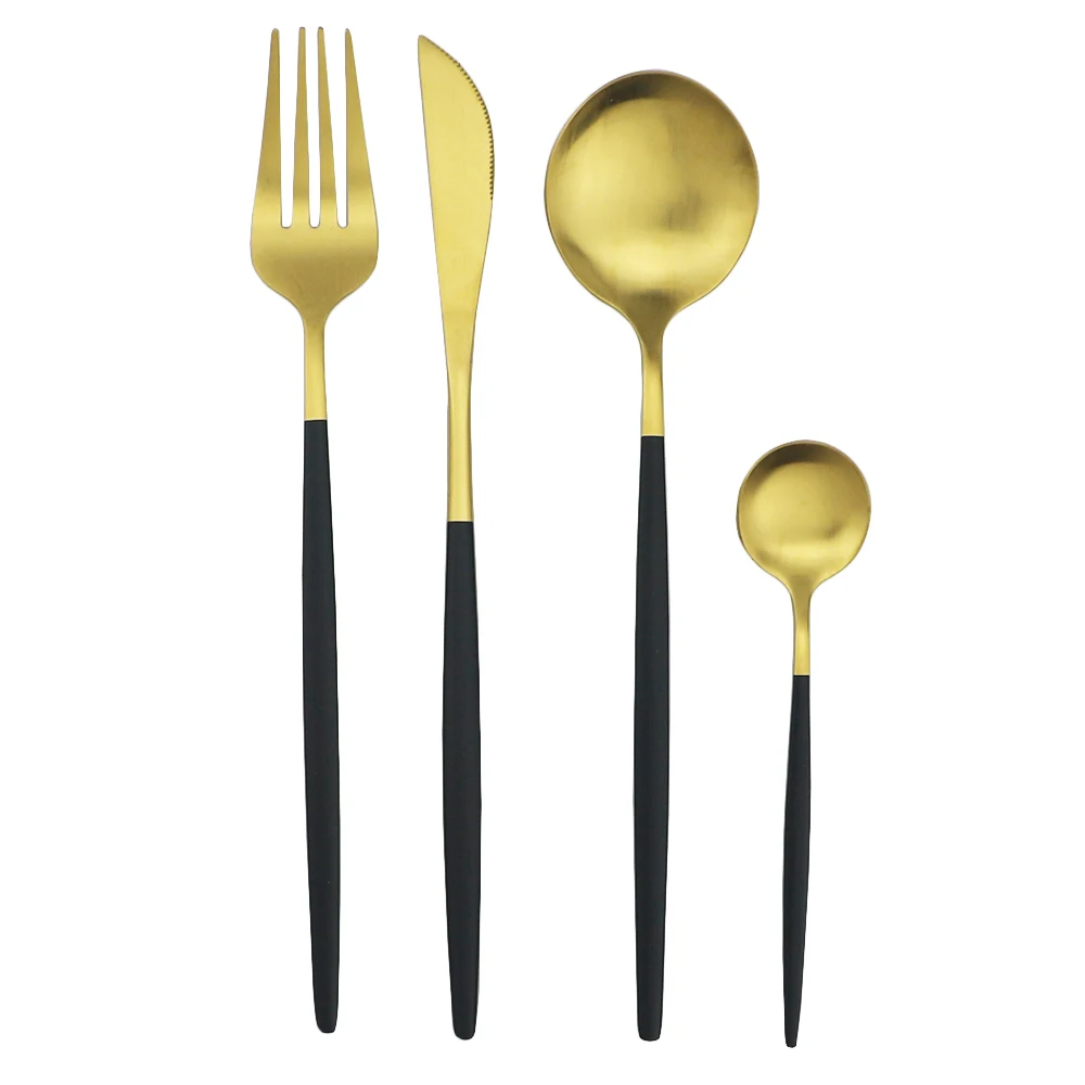 Всего 8 штук в наборе, в комплект входят 2 столовых ножа, 2 столовые ложки, 2 столовые вилки, 2 чайные ложки.