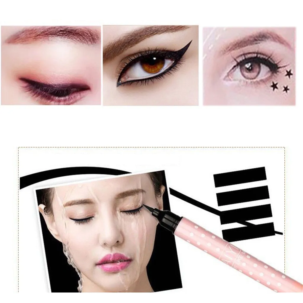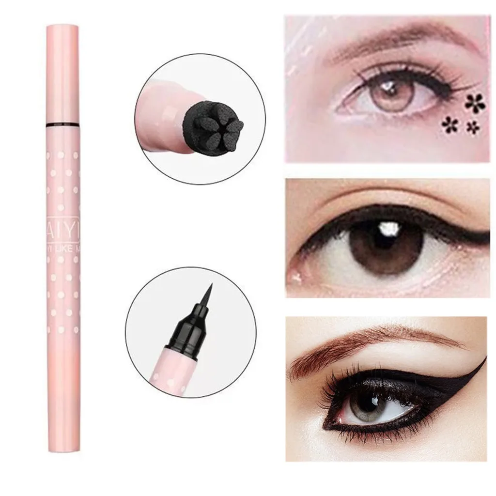 Новинка 1 шт. 2-в-1 двойная головка Водонепроницаемый макияж подводка для глаз штамп чернила печать черный