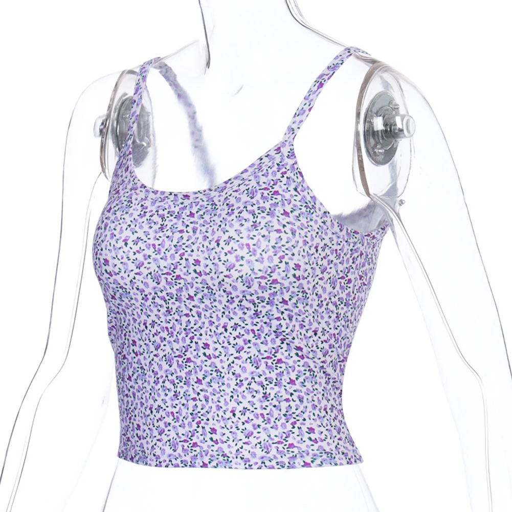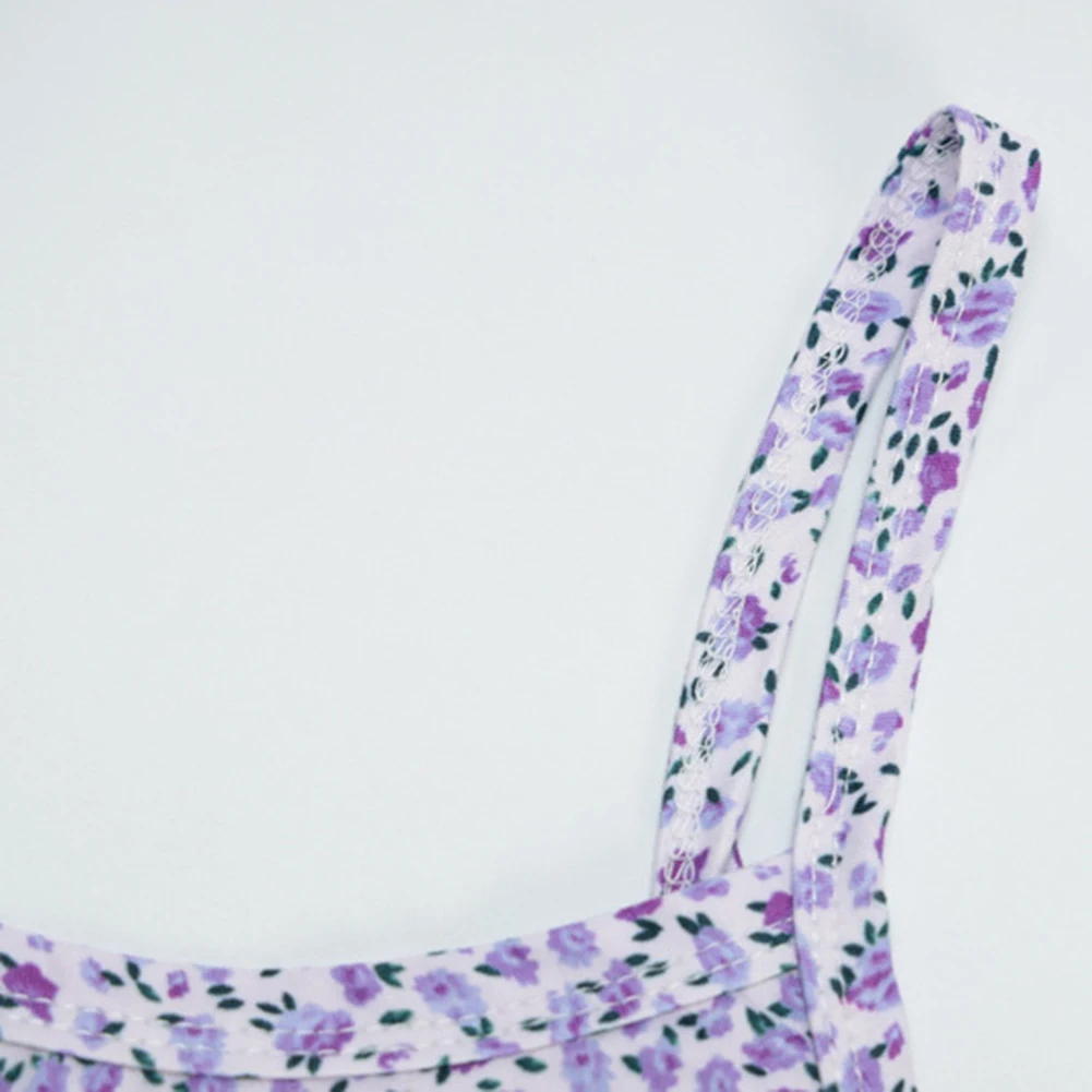 -Платье-майка из полиэстера на бретелях с u-образным вырезом и принтом фиалки.