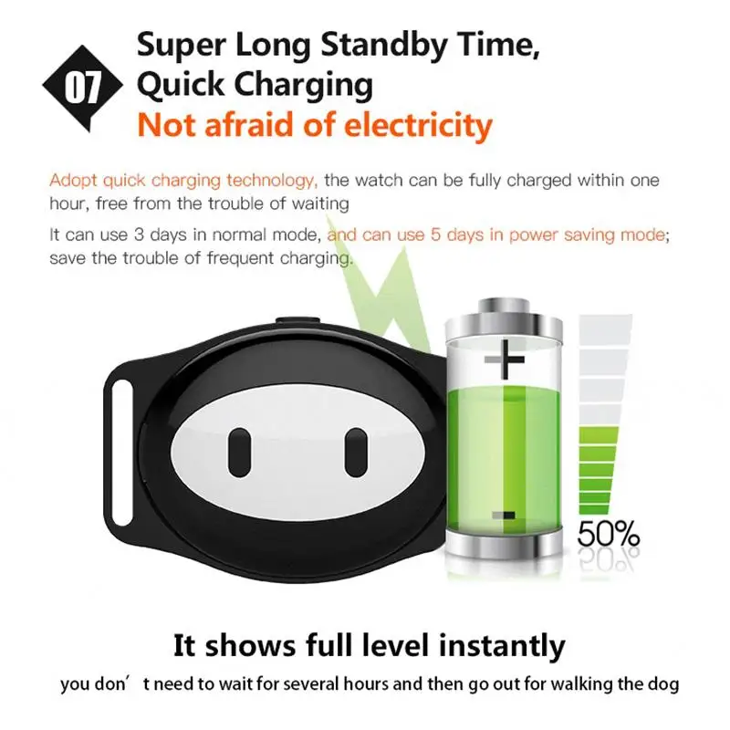 Он использует технологию быстрой зарядки и может быть полностью заряжен в течение 1 часа. Нормальное использование в течение 3 дней энергосберегающий режим в течение 5 дней.
