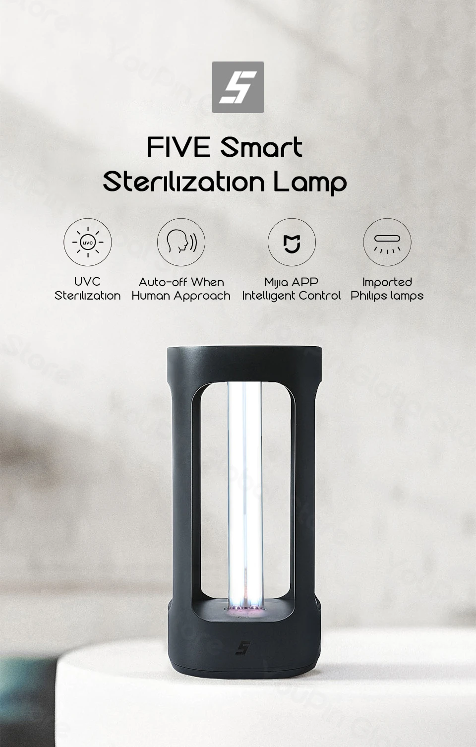 1. Людям и животным не разрешается присутствовать, касаться или смотреть непосредственно, когда лампа работает. 2. Удерживайте переключатель 3 секунды, чтобы включить/выключить, а затем нажмите еще раз, чтобы начать ультрафиолетовую дезинфекцию (лампа начнет работать через 30 секунд). Время работы можно установить через приложение mijia, по умолчанию 30 минут. 3 лампа автоматически приостанавливает ультрафиолетовую дезинфекцию при обнаружении приближения человеческого тела.