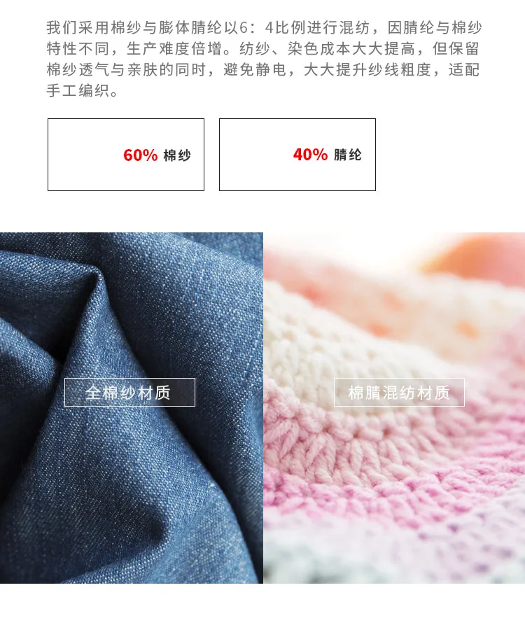 Материал: 60% хлопковая пряжа + 40% акриловое волокно