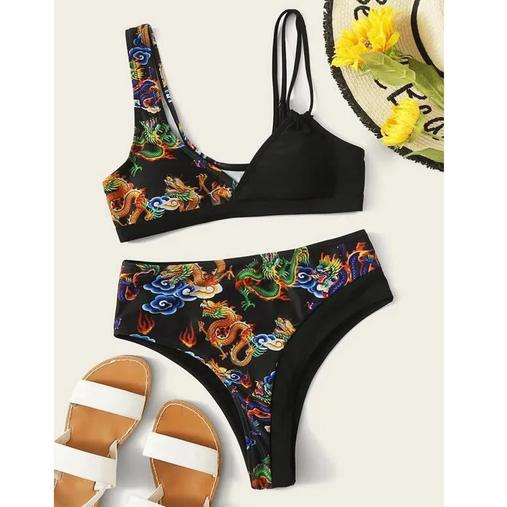 Женский комплект бикини с винтажным принтом, купальник с пуш-ап, мягкий бюстгальтер, купальник, пляжная одежда