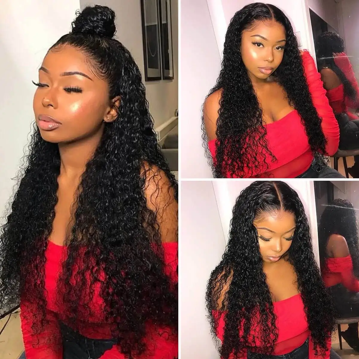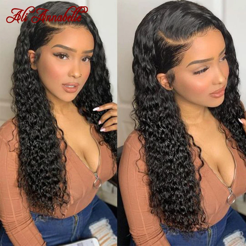 Бразильские кудрявые передние парики шнурка 4x4 парик человеческих волос Кудрявые 180% плотность кружева передние человеческие волосы парики Али Annabelle волосы