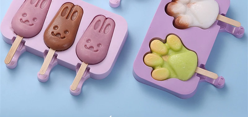 Форма для мороженого, милый медвежонок, лапа, кролик, сделай сам, форма для фруктов, штабелируемые силиконовые коробки, домашняя кухня, бар, морозильник, палочки для эскимо