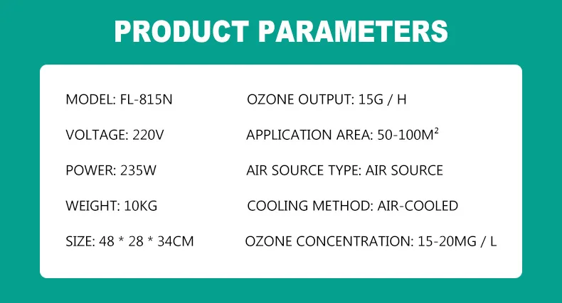Выход озона: 15 Гц/ч