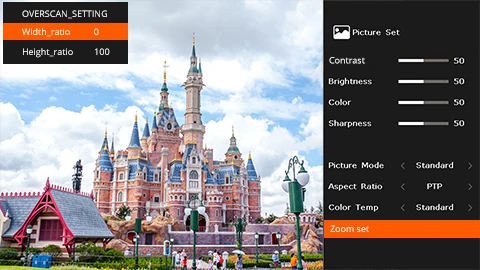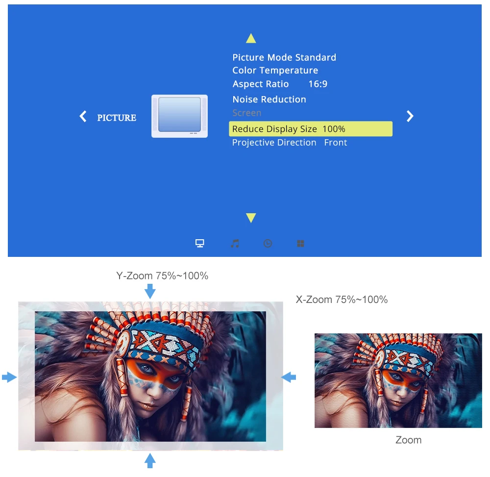 Подключите к компьютеру через кабель HDMI или кабель VGA, даже ваш проектор установлен на фиксированном расстоянии, вы также можете использовать зум дисплея для регулировки размера проекции (режим USB поддерживает увеличение дисплея при воспроизведении видео или изображений.) T8 UI: