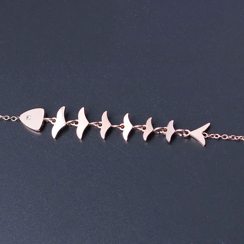Женский браслет из нержавеющей стали LifeJoys, браслет из рыбьей кости, браслет из розового золота, творческая цепочка, ювелирное изделие
