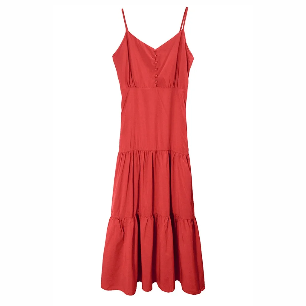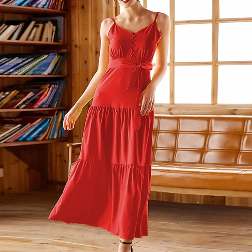 Модное женское летнее длинное платье, повседневное свободное сексуальное однотонное платье без рукавов с пуговицами и v-образным вырезом, вечерние платья макси Vestidos