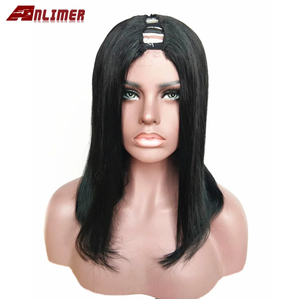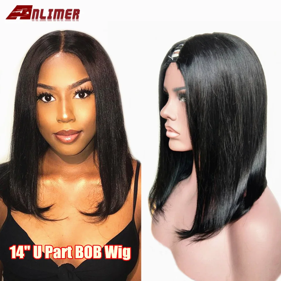Короткие парики из натуральных волос, 1x4, прямые бразильские человеческие волосы Remy, u-образные парики, плотность 130%-250%
