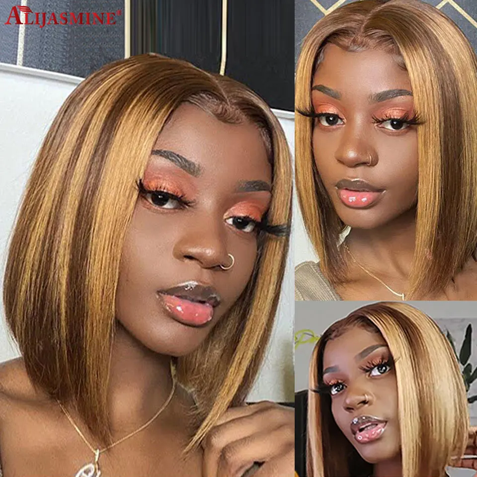 Парики из натуральных волос на кружевной основе 150% года: медовый блонд, коричневый Боб, парик из натуральных волос на кружевной основе, бразильский парик Remy 360