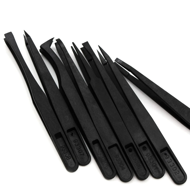 8 шт. антистатические углеродные волоконные пинцеты набор ручных инструментов пластиковый заостренный плоский локоть круглый пластиковый точный пинцет набор инструментов для ремонта