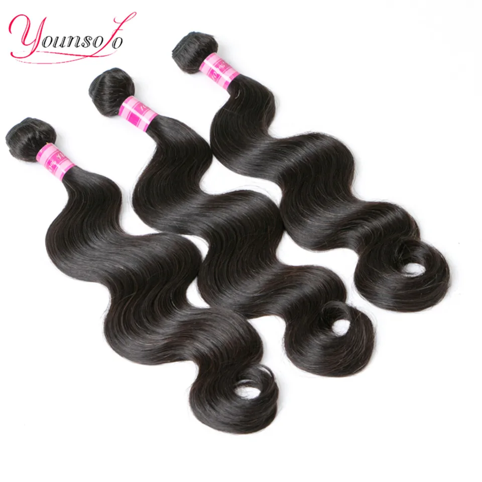 Younsolo перуанские Волнистые пряди с закрытием человеческие волосы 3 пряди с закрытием кружева Remy человеческие волосы для наращивания