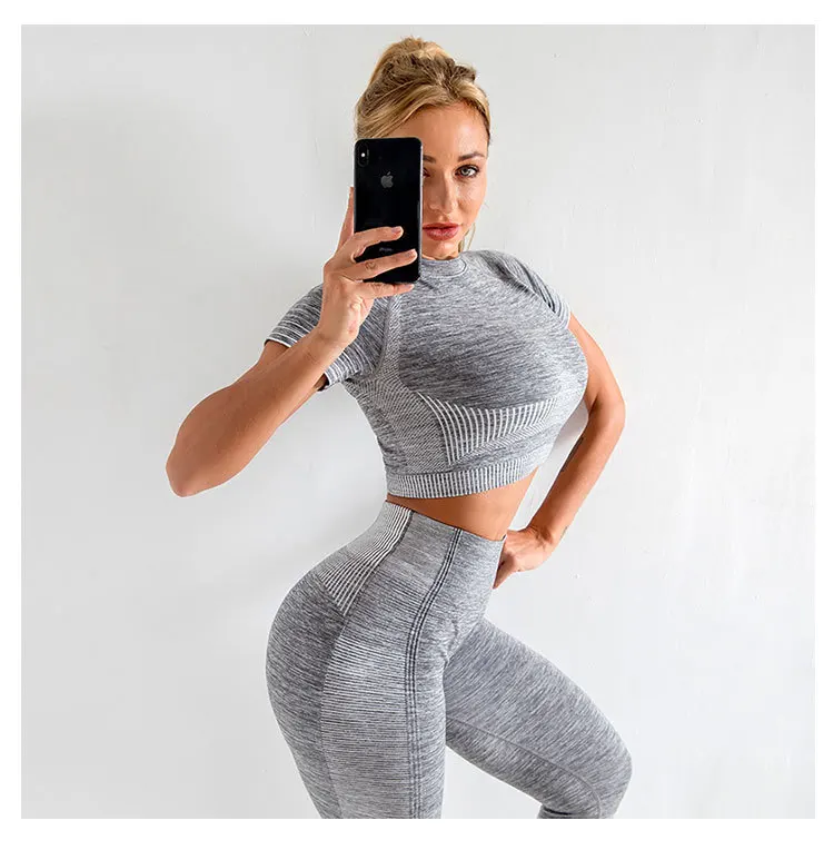 Градиент спортивный облегающий Топ Быстросохнущий тренировочный Бег Йога пупок