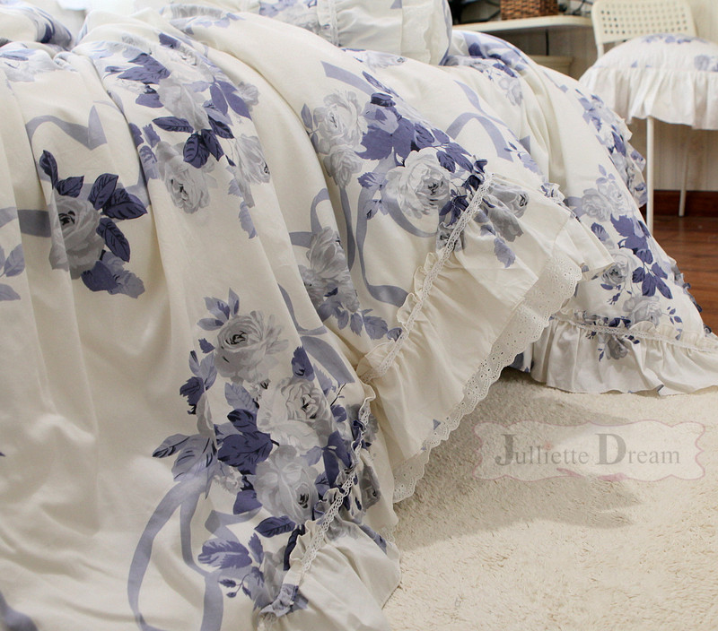 Милый комплект постельного белья принцессы с рюшами и кружевным бантом (3 шт./компл. или 4 шт./компл.)