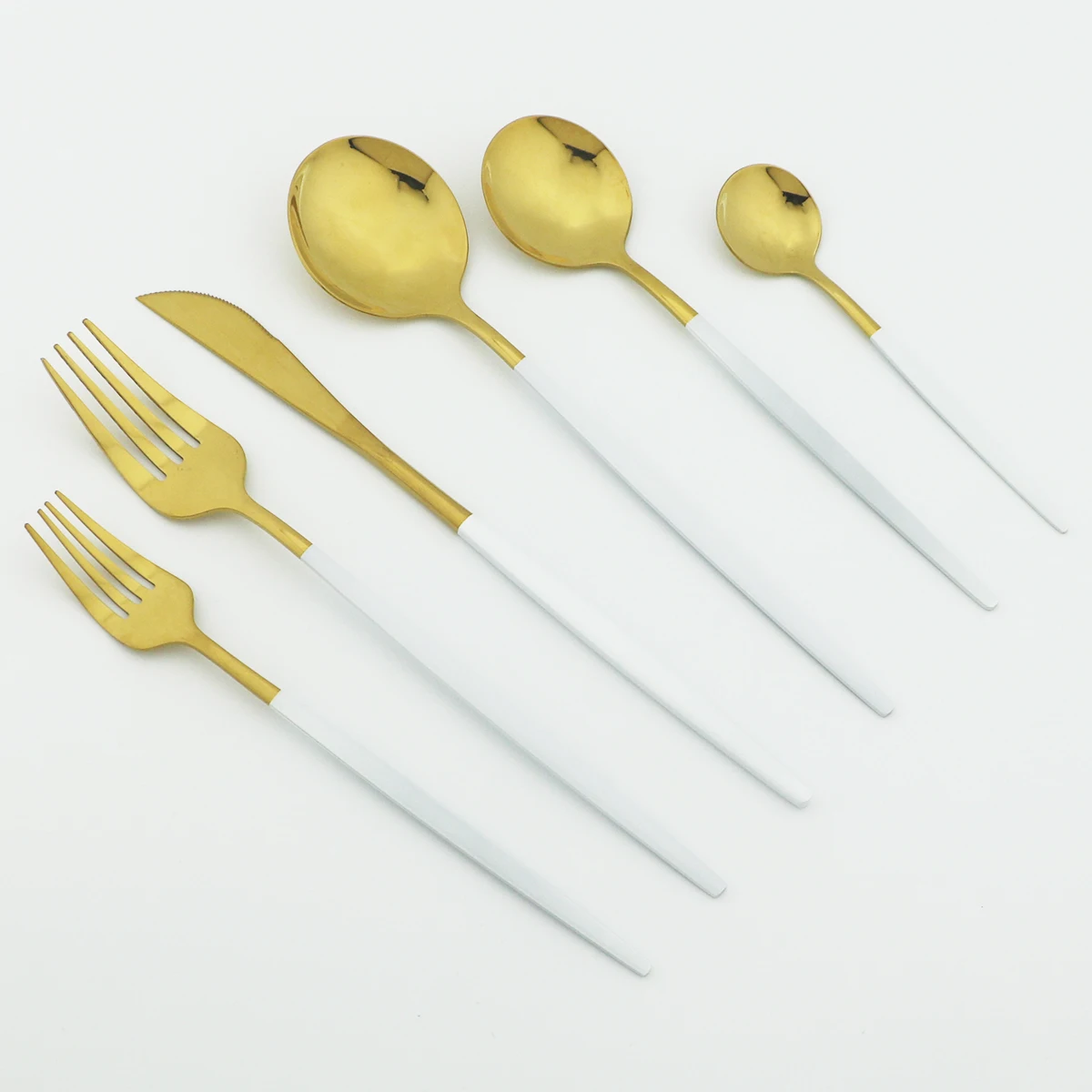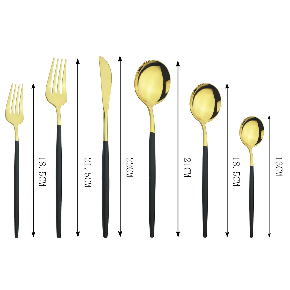 Всего 36 штук в наборе, в комплект входят 6 ножей для ужина, 6 ложек для ужина, 6 вилок для ужина, 6 десертных вилок, 6 ложек для десерта, 6 чайных ложек.