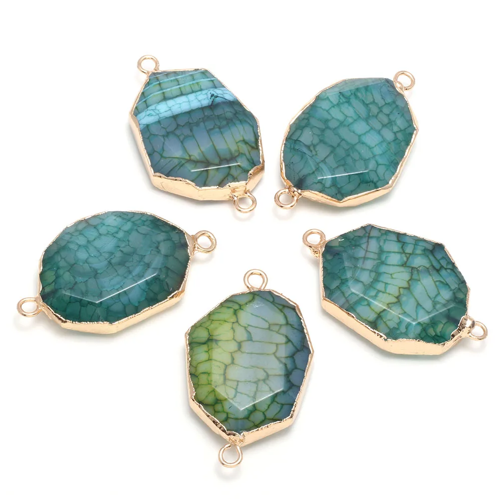 Женские шармы-соединители с натуральным драконом из кости агата, 2 отверстия, серьги, браслет, ожерелье, ювелирные изделия, аксессуары 27x45мм