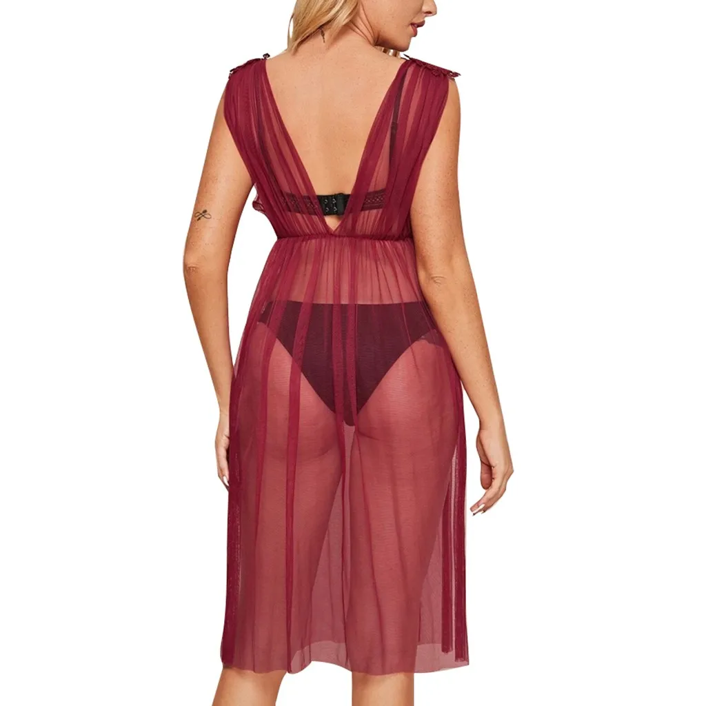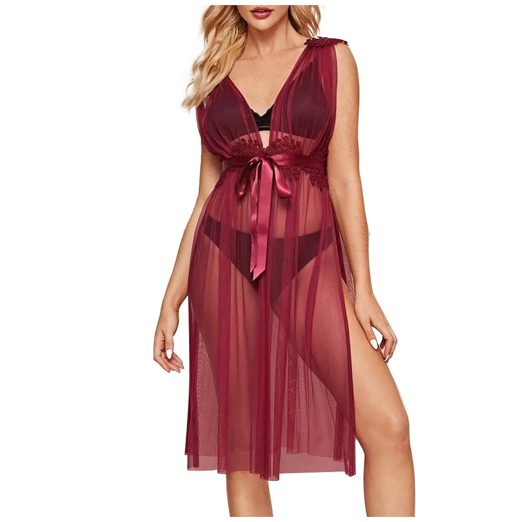 Сексуальное женское нижнее белье, сексуальная блузка, Халат + стринги, одежда для сна, кружевное нижнее белье, секс Babydoll, Эротическое платье, ночная рубашка