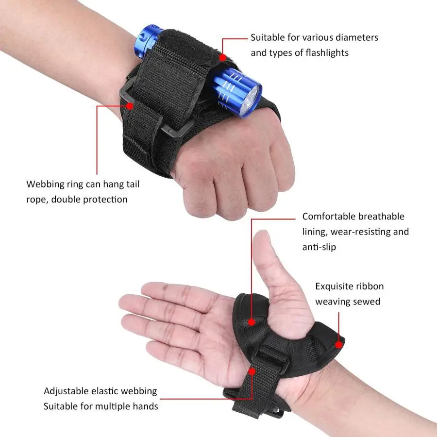 Перчатки с фонариком для дайвинга, наружный, анти-потерянный, подводный фонарь, без рук, легкий держатель, перчатки, Регулируемый мягкий черный ремешок на запястье, хит продаж