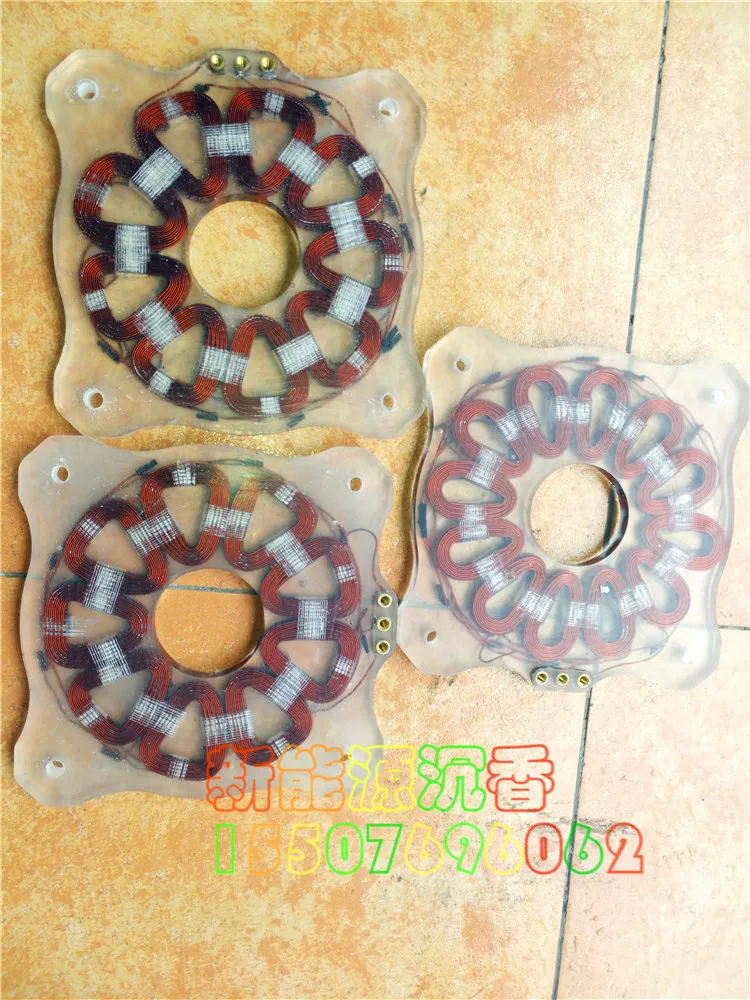 Новый высокомощный диск без сердечника генератора, кажется простым, очень особенным, очень громоздким для производства, требует высокой точности, имеет много деталей, много процессов, И очень трудоемкий и трудоемкий. Проходит через намоточная форма-обмотка-плоский кабель-обмотка-клеммы-Сварка-изоляция-изоляционная краска-сварная проволока пост-бандаж-Катушка-армирование ткани из волокна-эпоксидная смола-лечение-после 24 часов-удаление плесени, процесс громоздкий. Владелец магазина делает его тщательно, с достаточным количеством материалов, гладкой обмоткой, равномерным размером и равномерной толщиной, используя бескислородную медную эмалированную проволоку с термостойкостью 180 градусов. Диаметр проволоки достигает 1,18 мм. Толщина 10 мм, гладкая и плоская, среднее круглое отверстие 55 мм. Размер 185*185. Увеличьте терминал из чистой меди, инкрустация, изысканная и красивая, удобная проводка. Существует два типа катушек дисков катушки, обычная и высокая мощность, обычно 9 катушек и 12 катушек для высокой мощности. Оба имеют одинаковый диаметр провода.