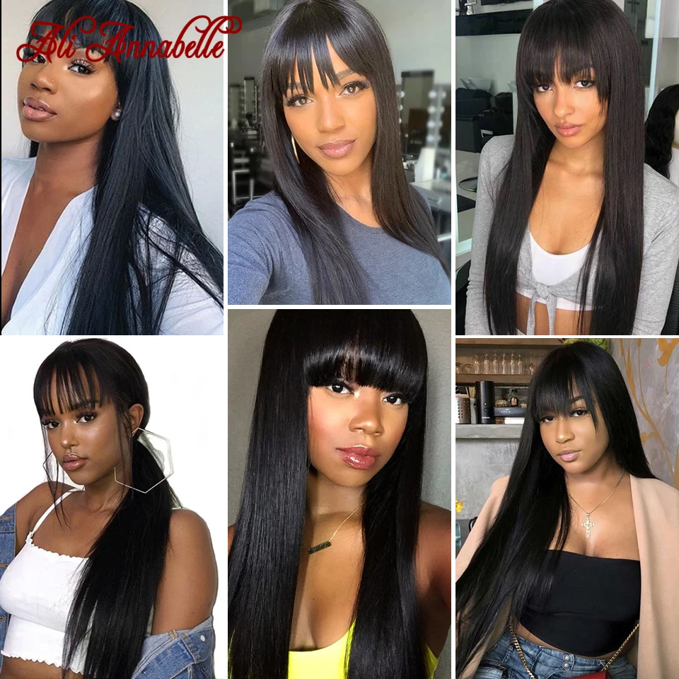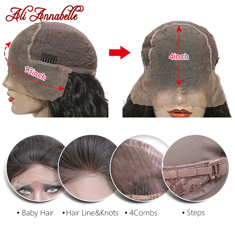 Парики из натуральных волос на кружевном фронте бразильские волосы Remy прямые 13x4 парик с челкой 10 "-24" preplecked Ali Annabelle волосы