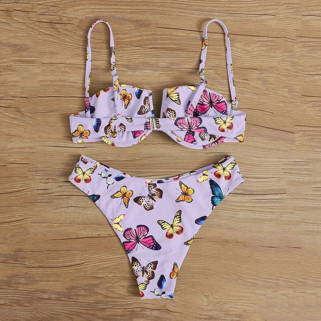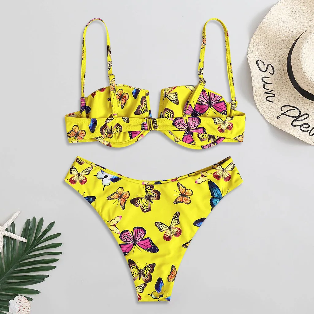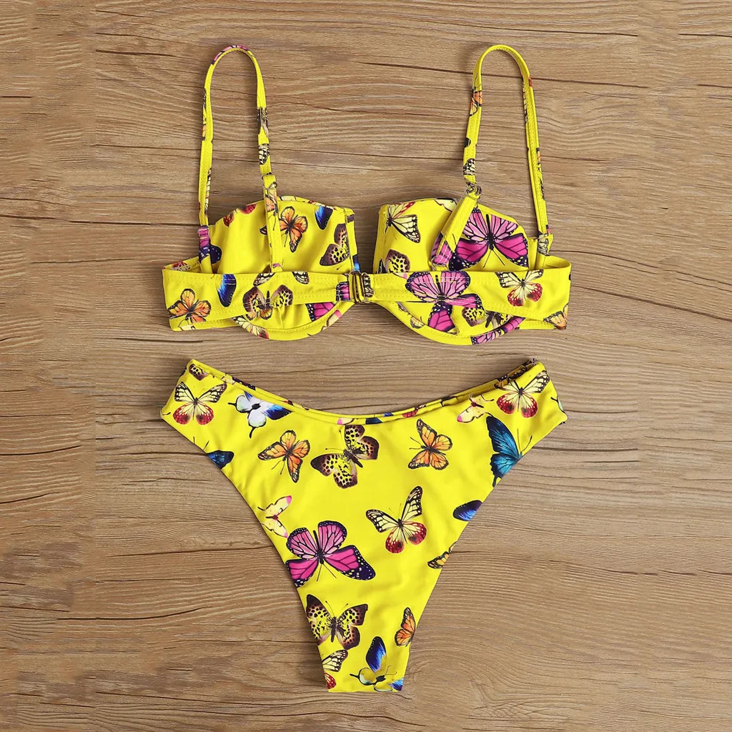 Сексуальный бандо Бикини Набор Женский цветочный принт купальник пуш-ап купальник Бразильский бикини розовый бикини коврик купальный костюм Пляжная одежда