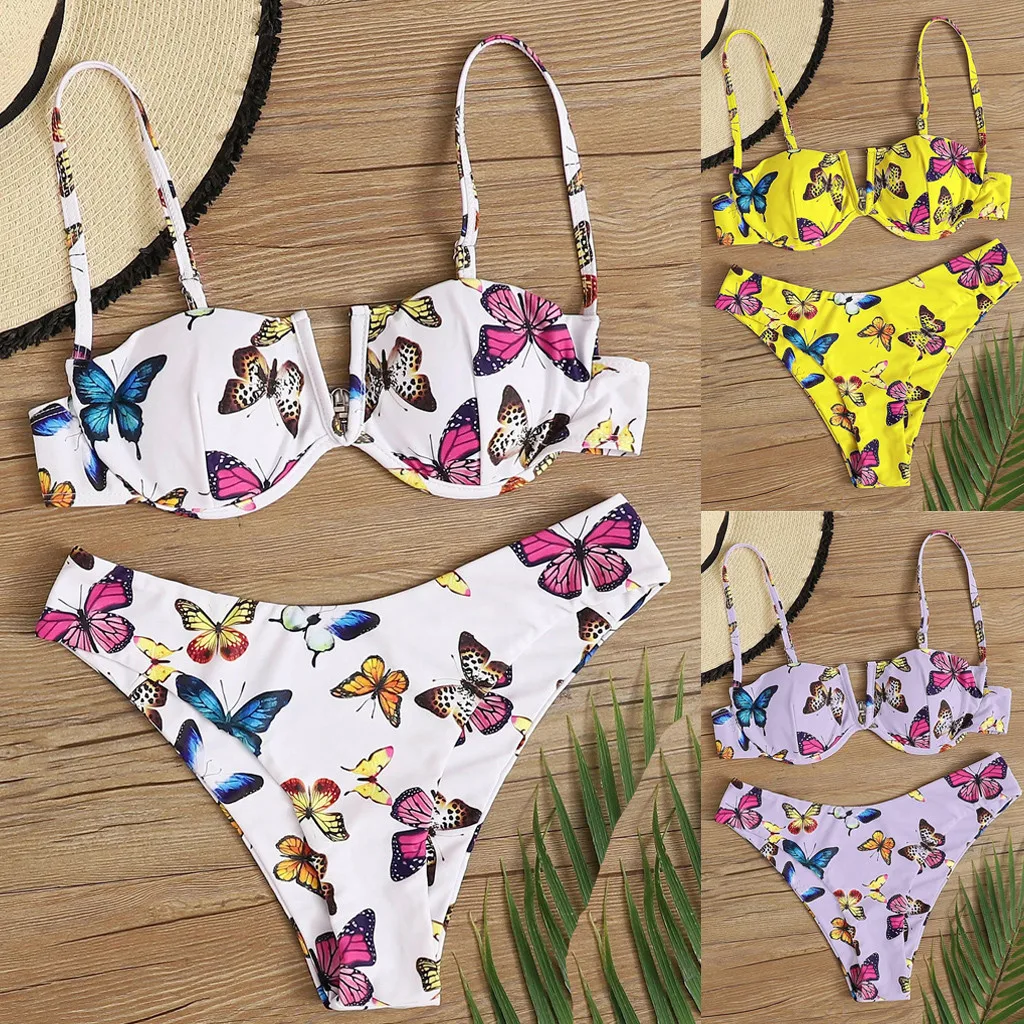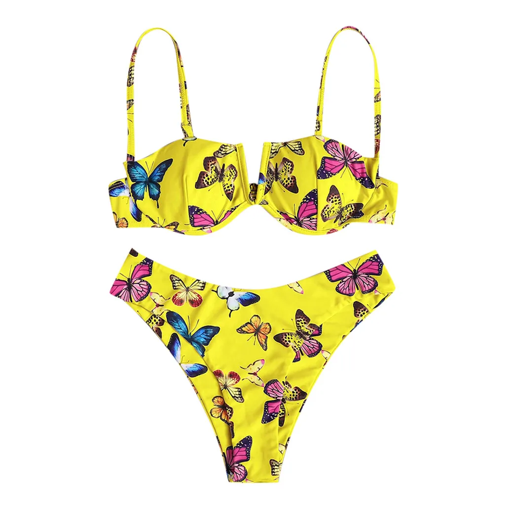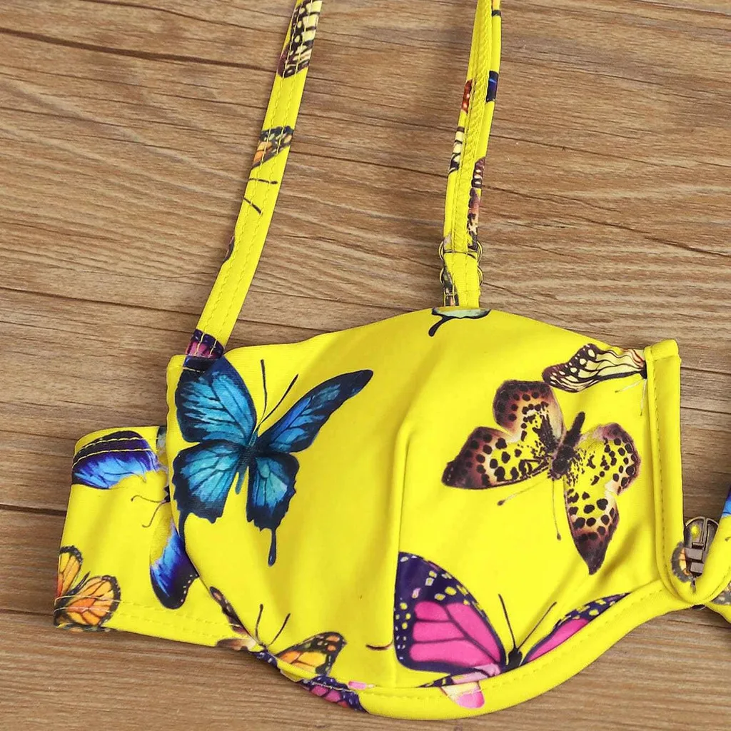 Сексуальный бандо Бикини Набор Женский цветочный принт купальник пуш-ап купальник Бразильский бикини розовый бикини коврик купальный костюм Пляжная одежда