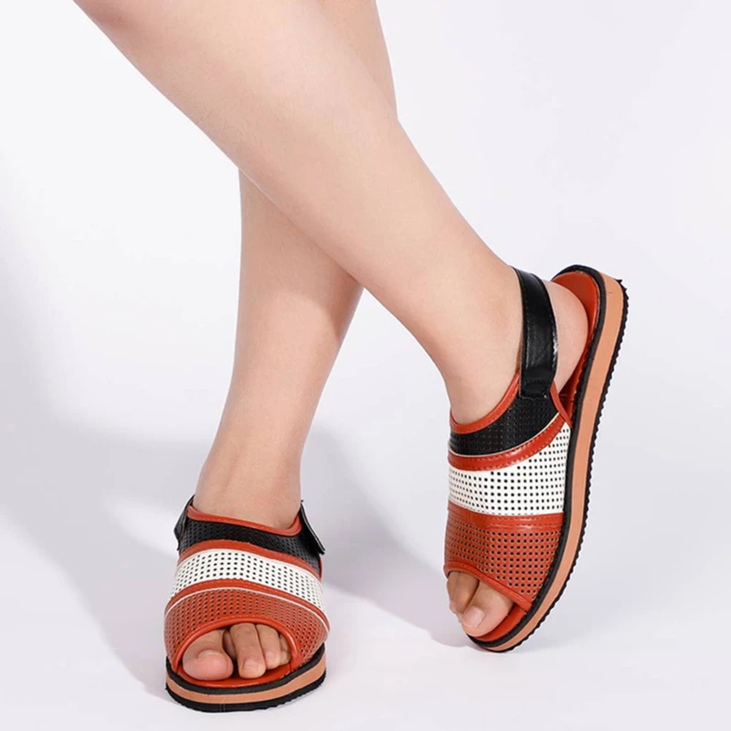 Женские босоножки на плоской подошве; Женская Винтажная обувь из искусственной кожи на липучке с открытым носком; Повседневная модная женская обувь в римском стиле; Лето 2020