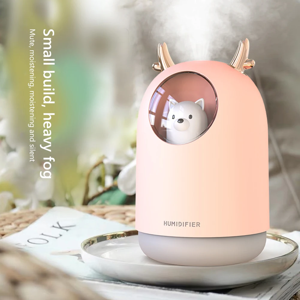 USB холодный туман увлажнитель мини-портативный увлажнитель милый Ультразвуковой Холодный Туман арома-диффузор увлажнитель воздуха распылитель с 7 цветными светодиодами Ночной светильник, регулируемый режим тумана и автоматическое отключение, тихая работа для ребенка, ребенка.