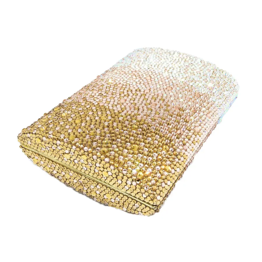 Золотая Женская вечерняя сумка с кристаллами и камнями ажурный коктейльный