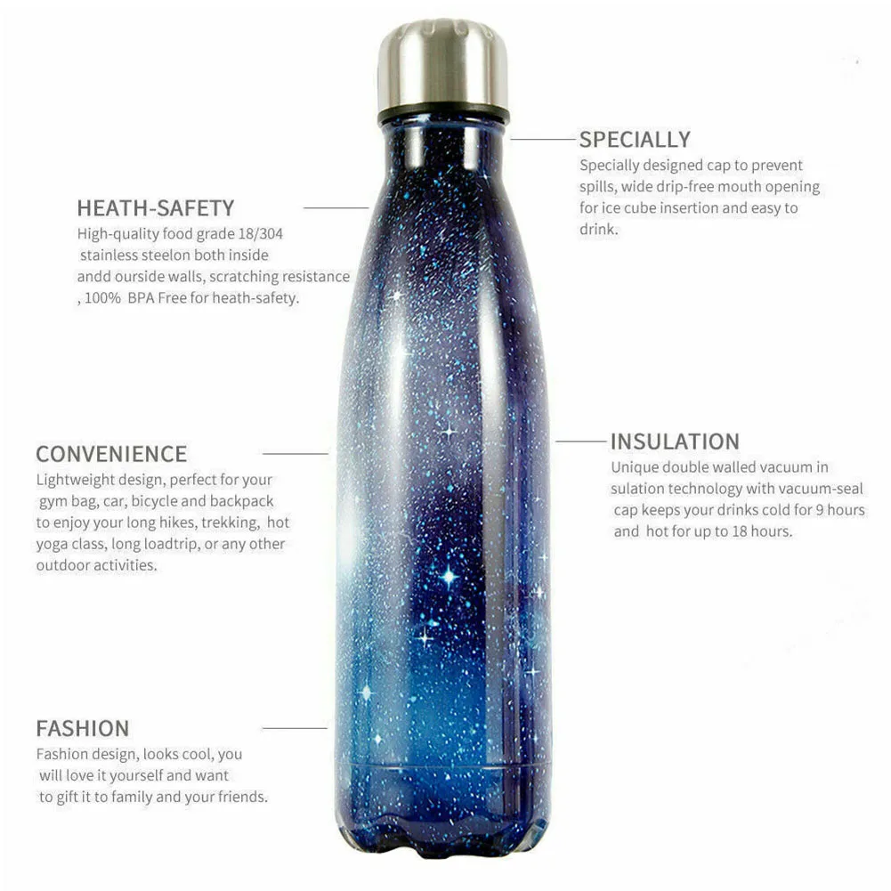 500 мл звездное небо/покрытие из нержавеющей стали Изолированная бутылка для воды Спортивная фляга чашка