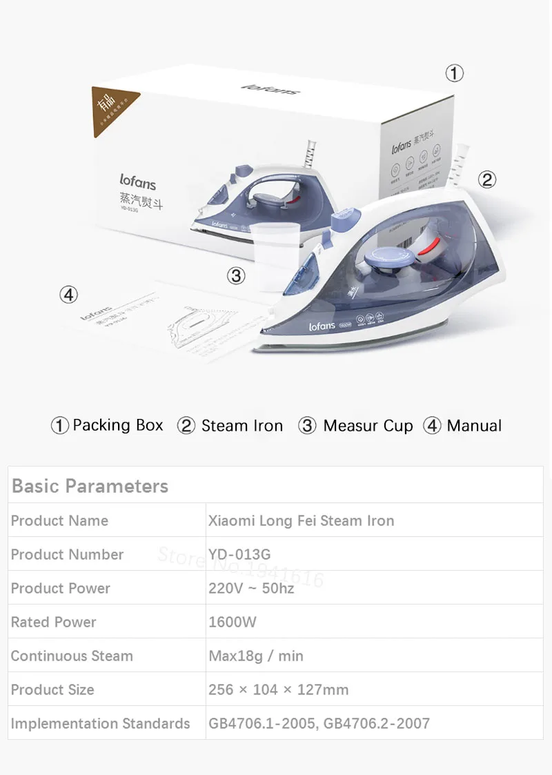 Youpin Lofans 1600 Вт Высокая мощность Электрический паровой утюг сильный паровой Многофункциональный сухой и влажный отпариватель одежды
