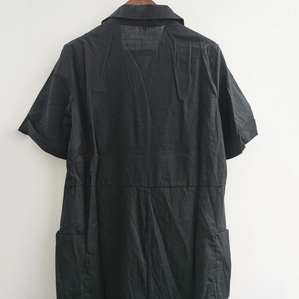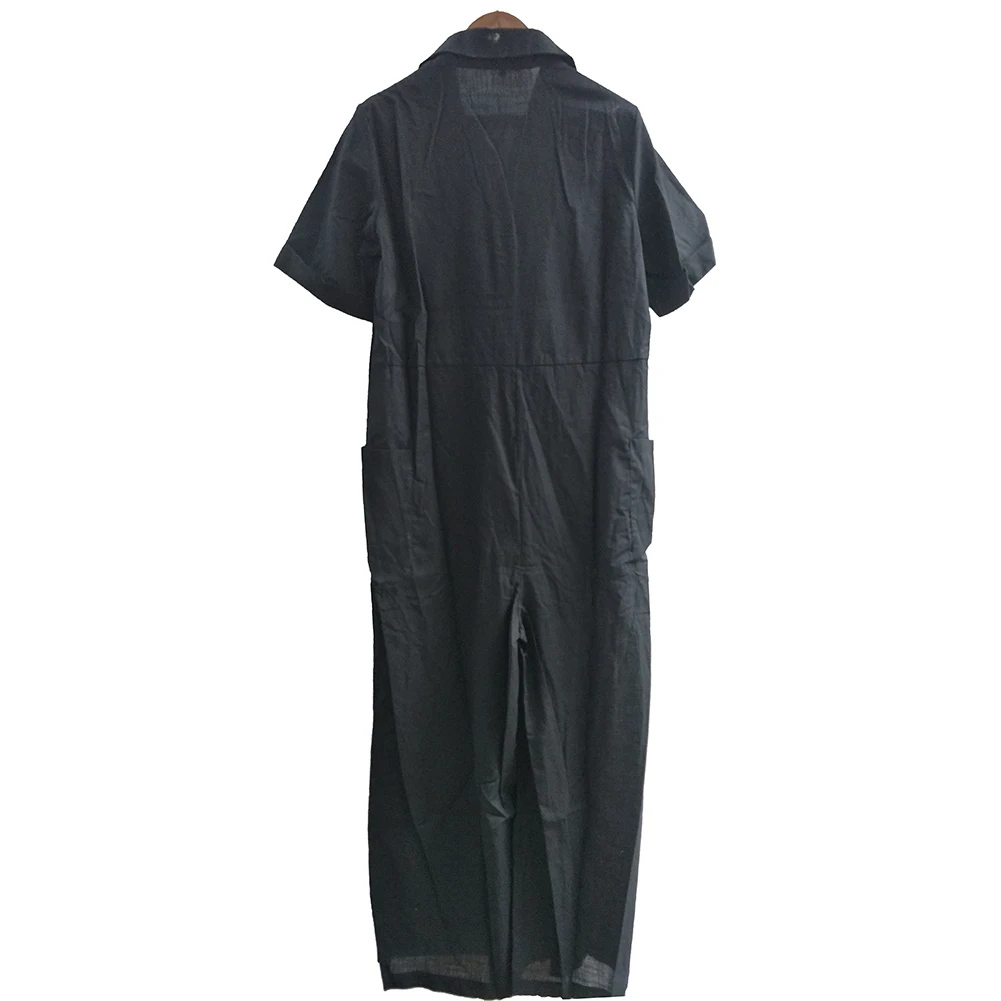 Женский однотонный комбинезон с v-образным вырезом и короткими рукавами и карманами на пуговицах