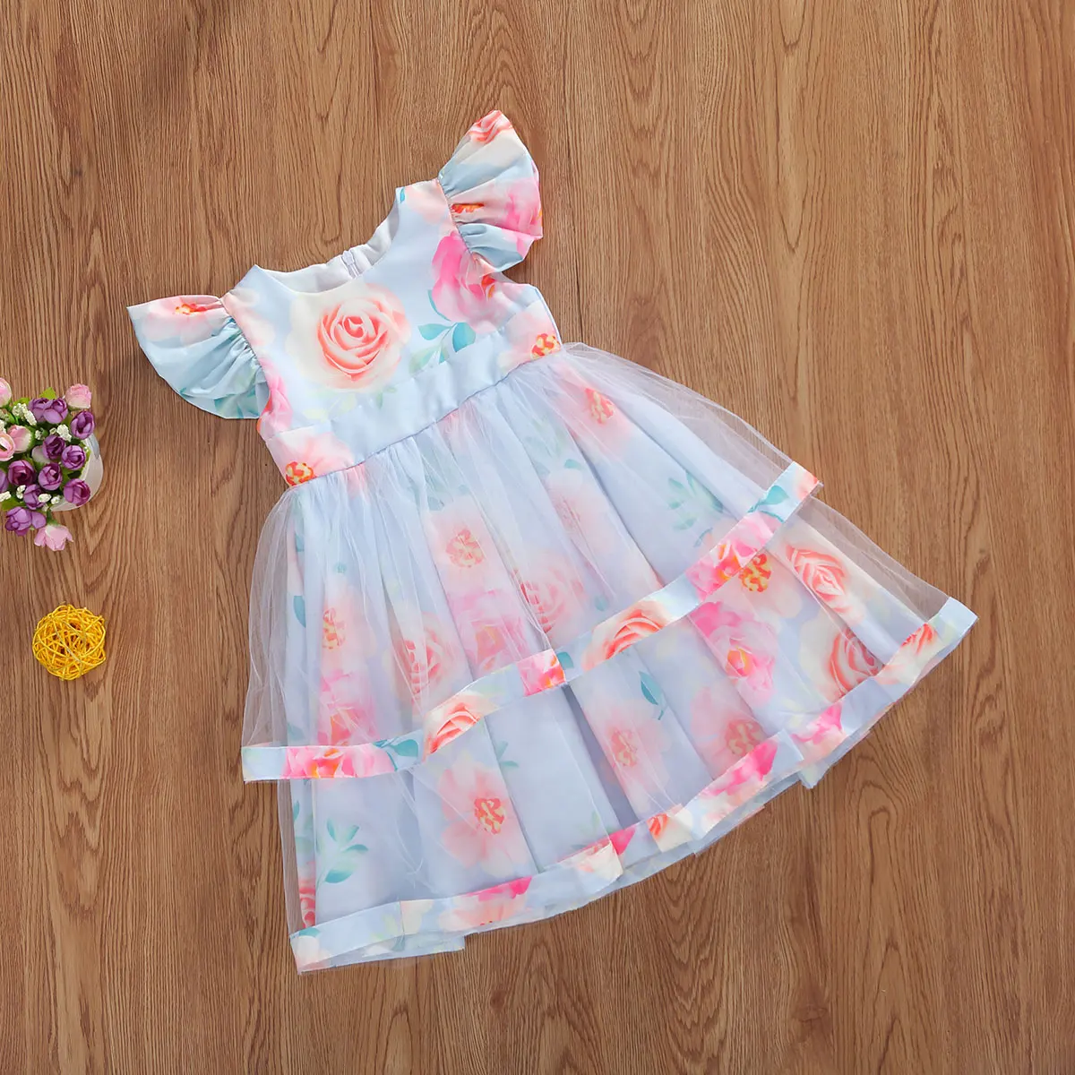 Платье для маленьких девочек нарядное платье с короткими рукавами, круглым вырезом и молнией сзади, с рисунком розы многослойное платье-пачка с поясом и розой