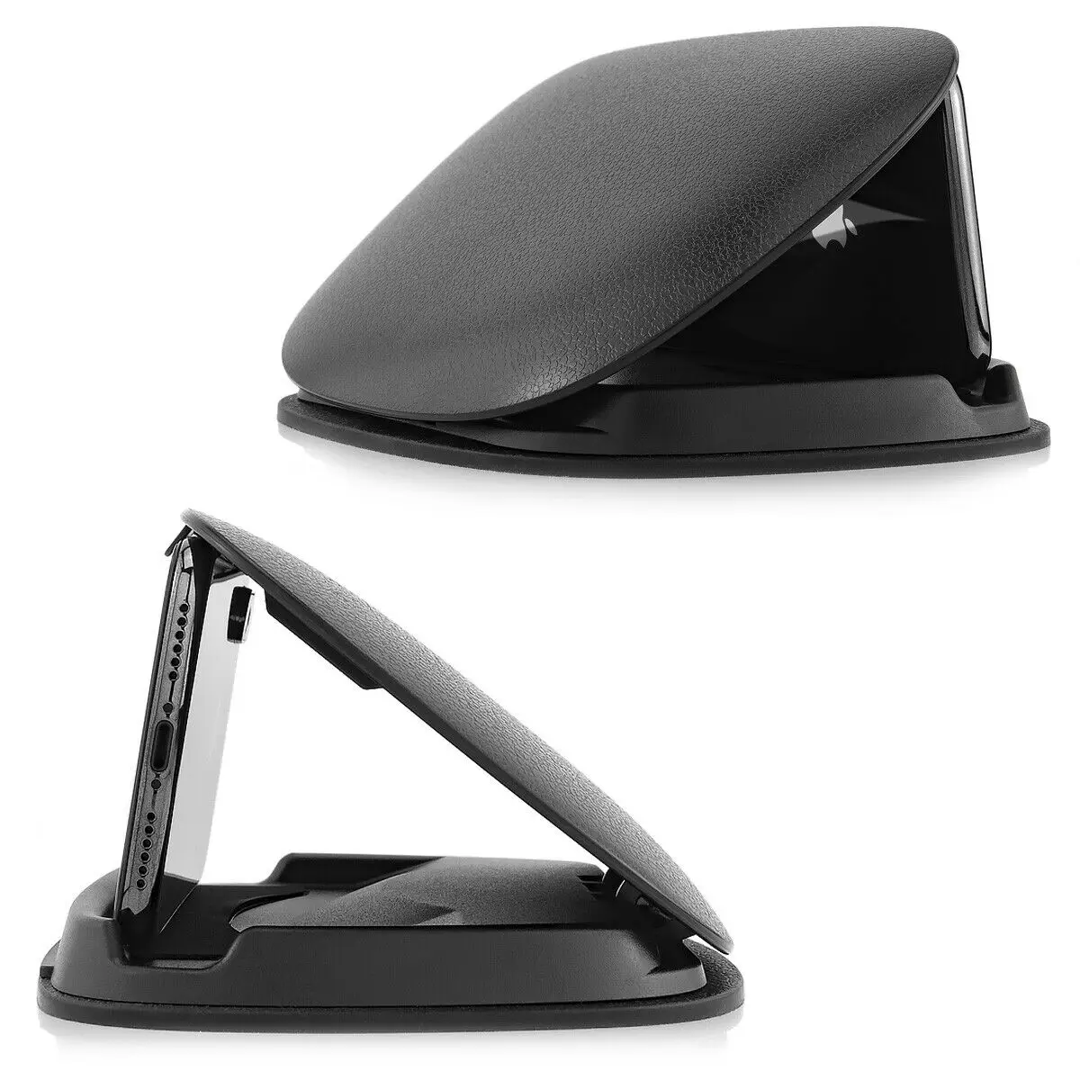 Черный держатель Мобильный телефон для автомобиля сдержанный и простой дизайн. Высококачественный внешний корпус из твердого пластика закрывается, а затем лежит на приборной панели. Снаружи маленькая Закрытая оболочка видна только при более тщательном осмотре. Незаметный и прежде всего ненавязчивый, он не раскрывает, что иногда здесь нужен дорогостоящий смартфон или навигационное устройство. Поскольку автомобильный держатель снаружи не выполнен из гладкого пластика, а имеет шероховатую поверхность, похоже, что его установил производитель автомобиля.