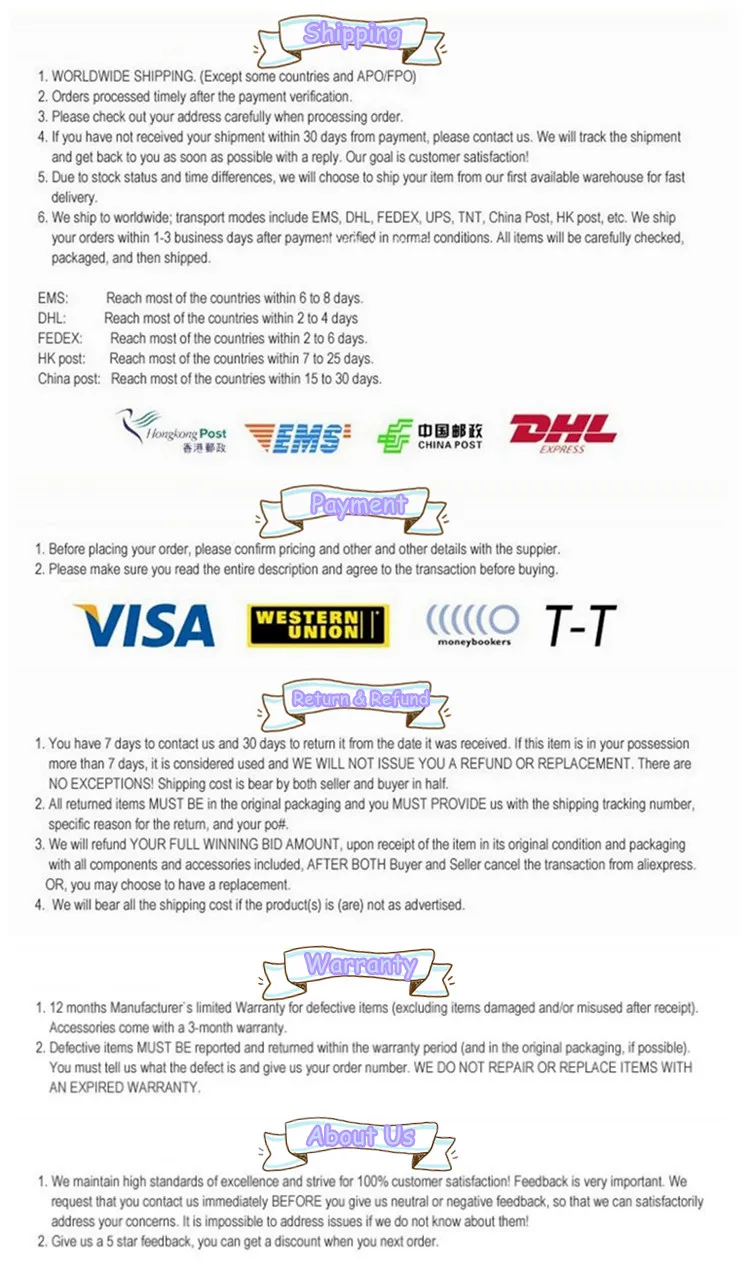 * Пожалуйста, учитывайте погрешность в 0-2 см из-за ручного измерения, пожалуйста, убедитесь, что вы не возражаете перед покупкой. * Из-за разницы между различными мониторами изображение может не отражать фактический цвет изделия. * Если у вас есть какие-либо проблемы, пожалуйста, свяжитесь с нами, прежде чем открыть спор или дать отрицательный отзывы, мы постараемся сделать все возможное, чтобы помочь вам, спасибо!