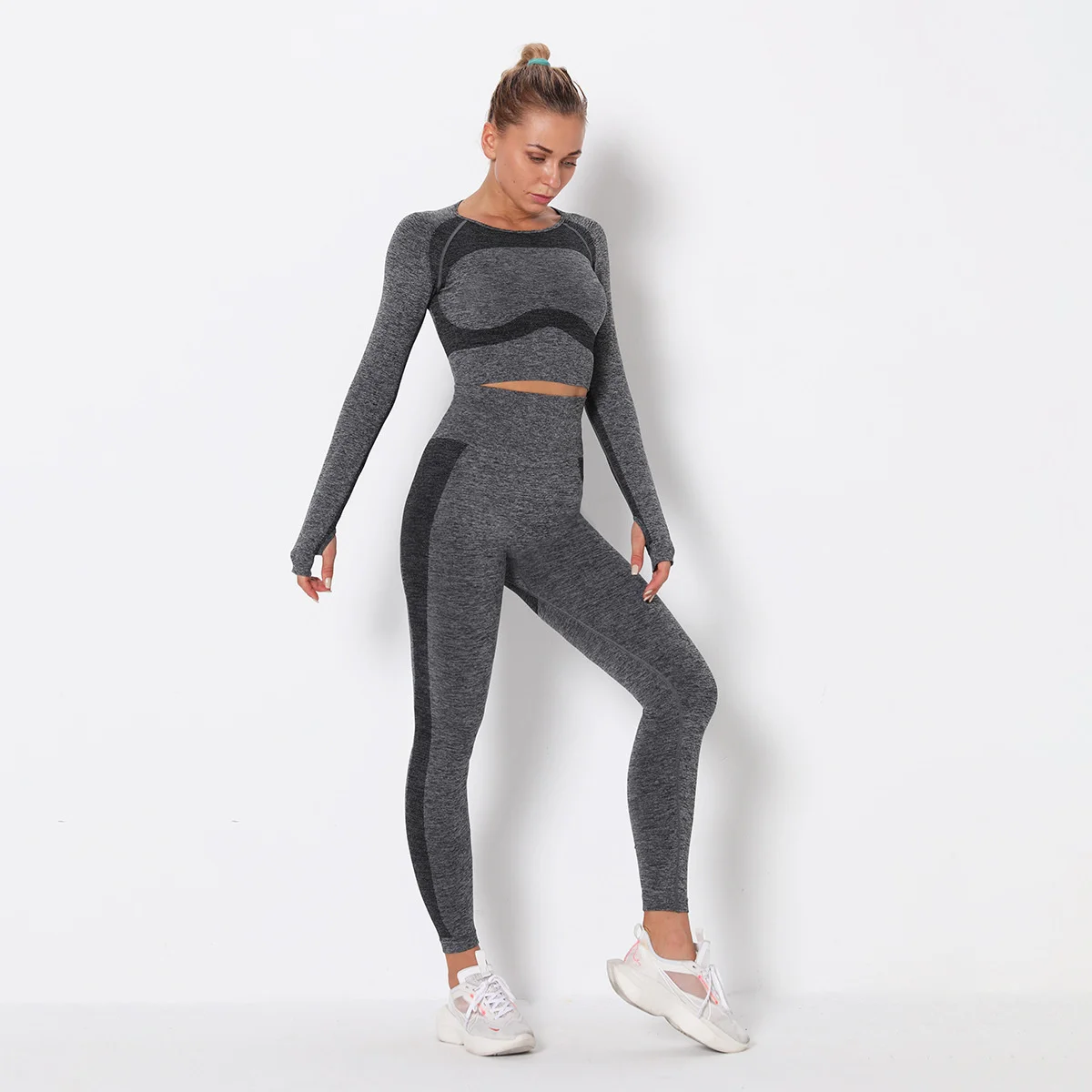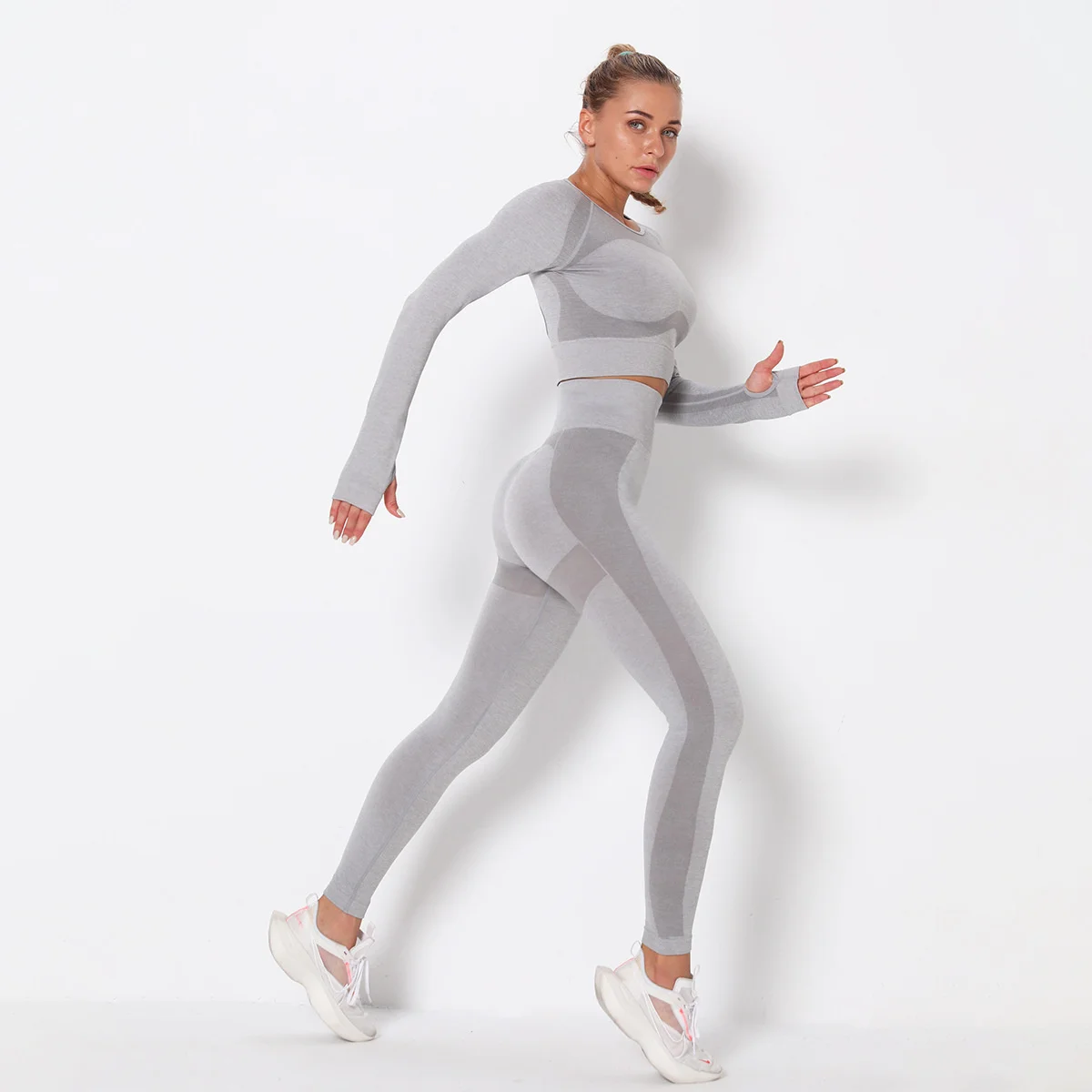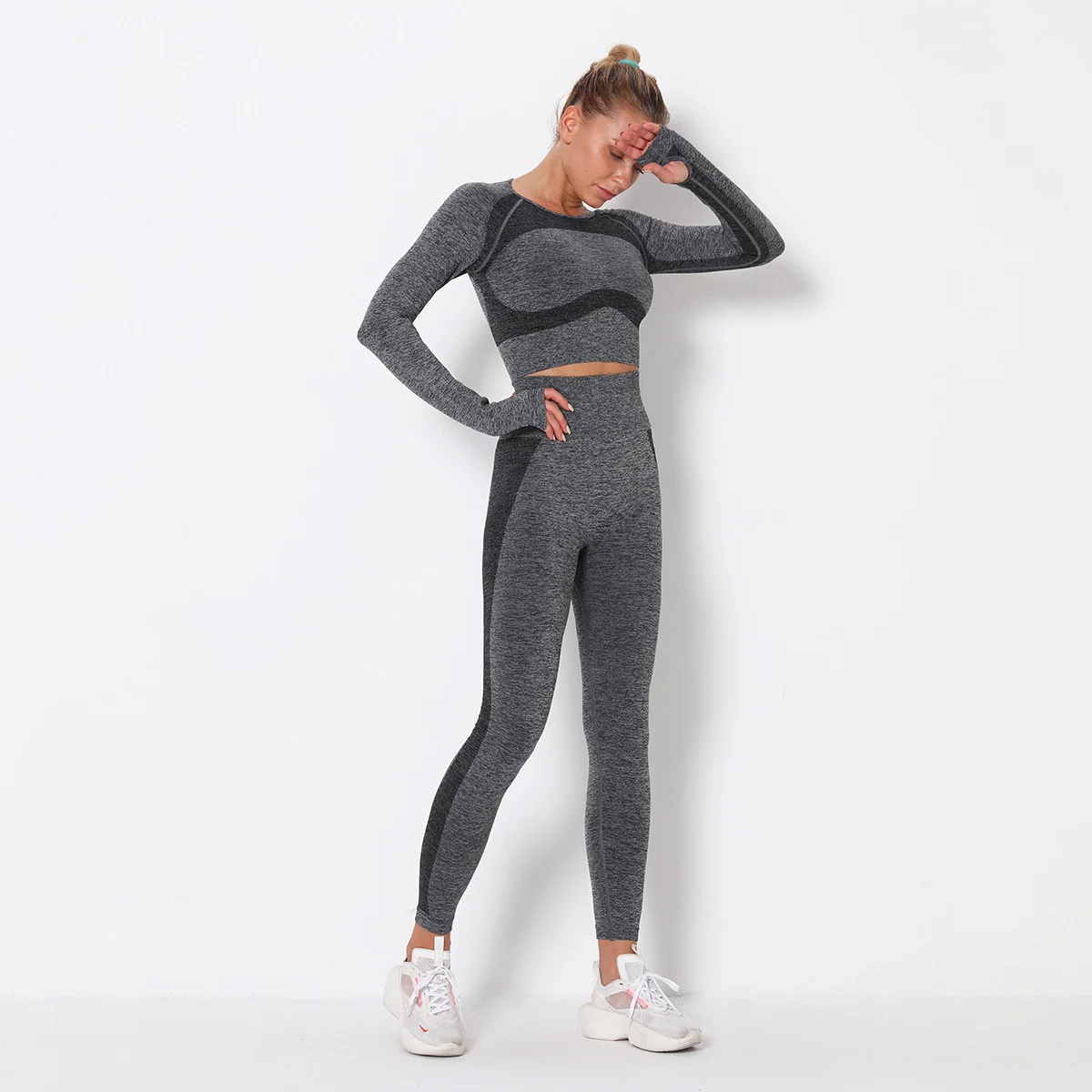 Женские Бесшовные Спортивные Леггинсы с высокой талией комплект для йоги