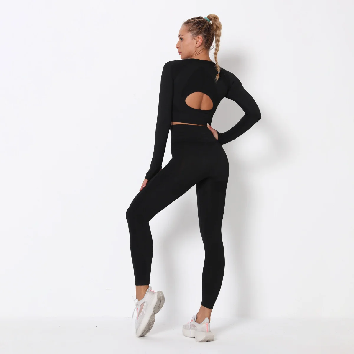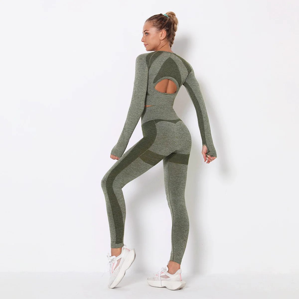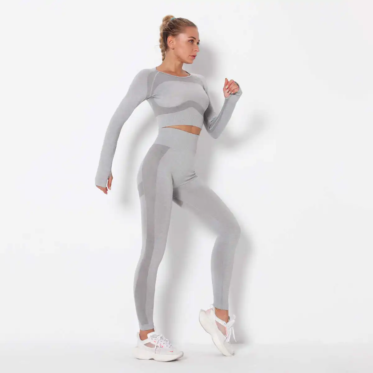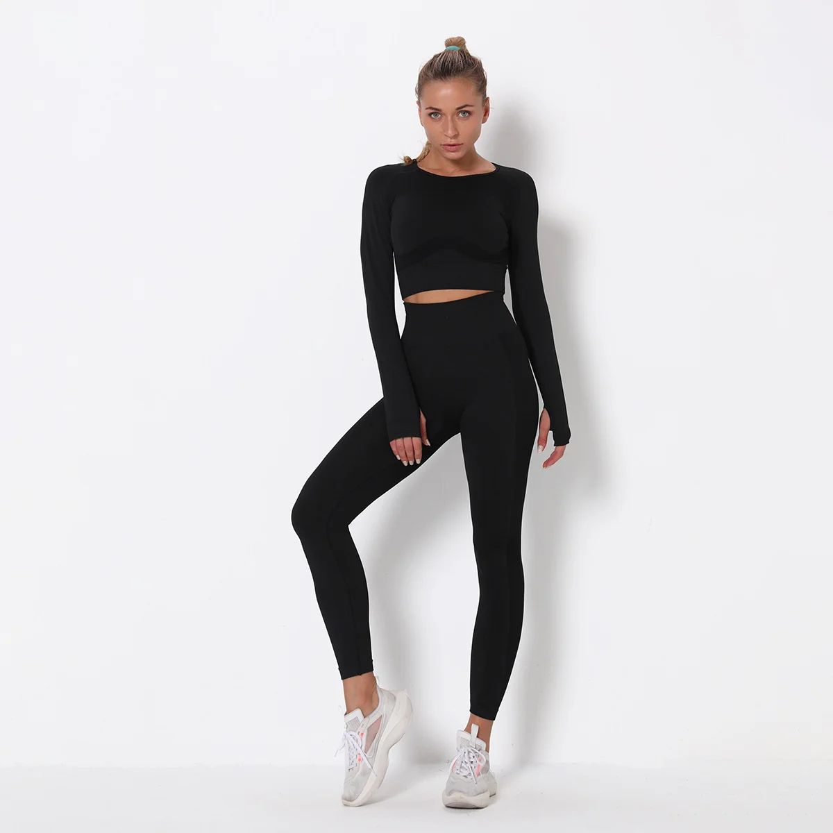Женские Бесшовные Спортивные Леггинсы с высокой талией комплект для йоги