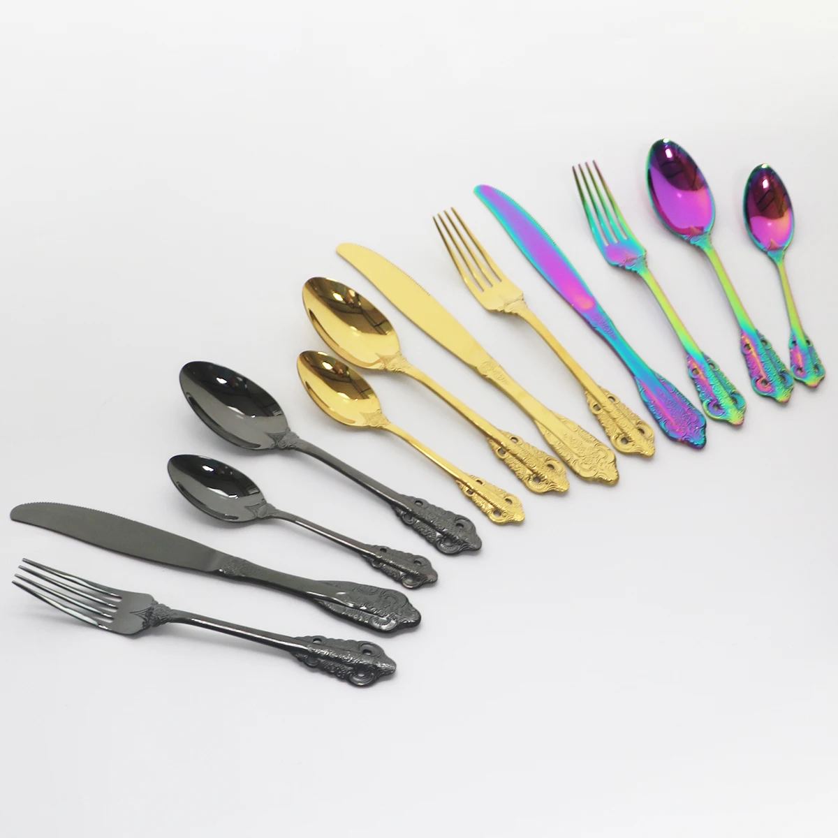Всего 32 шт. в комплекте, 8 шт. в наборе, 8 шт. в наборе, 8 шт. в виде обеденной ложки, 8 шт. в виде вилки, 8 шт. в виде чайной ложки.
