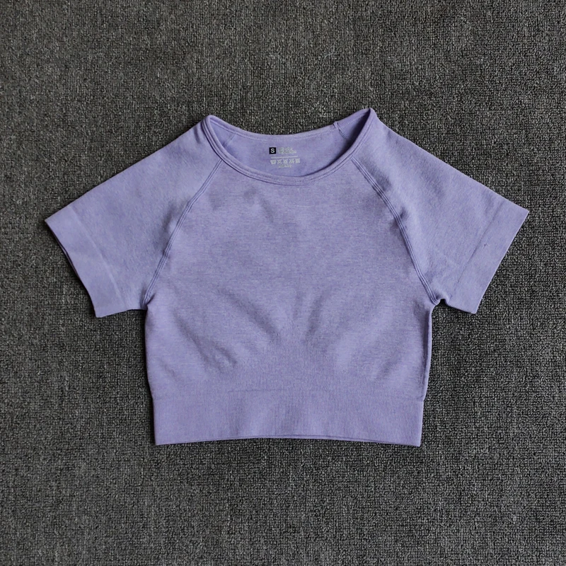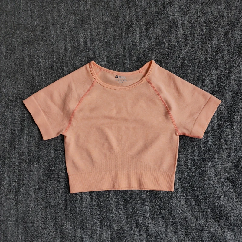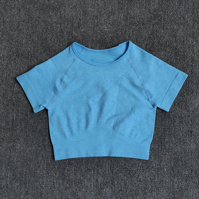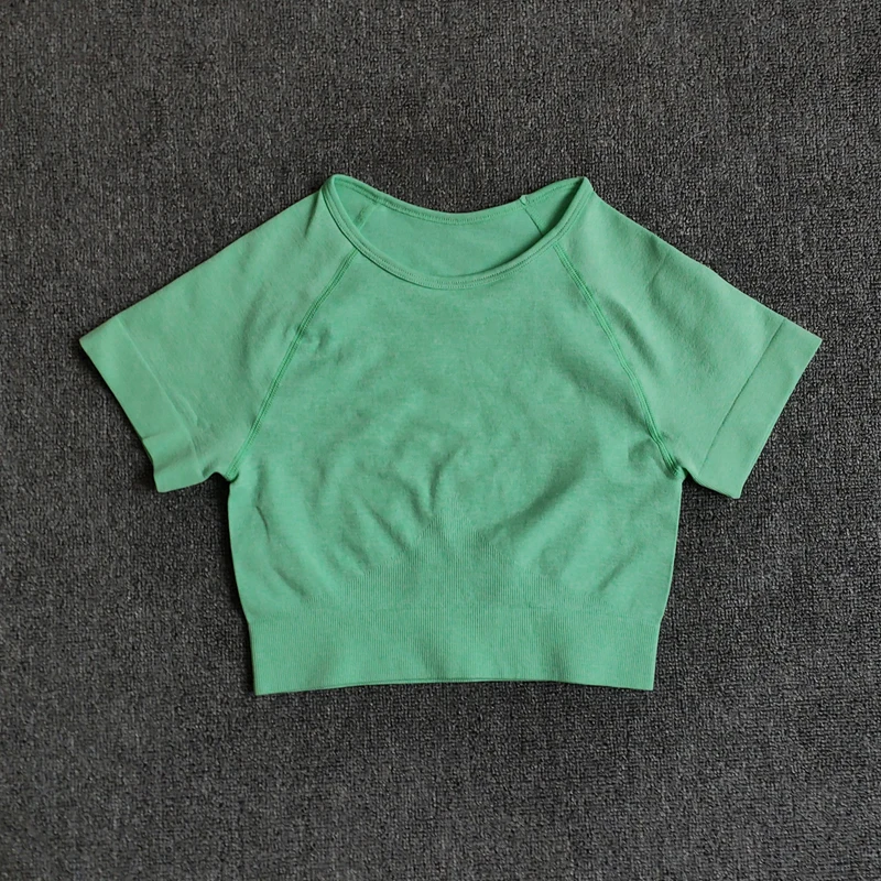 Рубашка для йоги, однотонный бесшовный Женский укороченный топ для фитнеса с коротким рукавом, топы для тренировок, спортивная одежда, футболки для бега