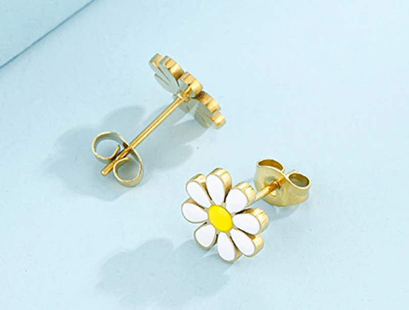 Серьги-ромашки из нержавеющей стали, милые серьги-гвоздики Подсолнух, ювелирные изделия для девочек, белые эмалевые серьги-гвоздики золотого цвета, свежий милый стиль, высокое качество