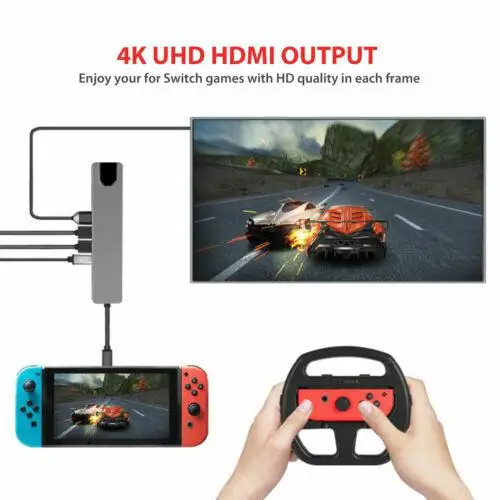 Выход 4K UHD HDMI: Расширьте переключатель Nintendo или ноутбуки Type-C на устройство с поддержкой HDMI. Разрешение: 4K UHD или full HD 1080p. Поддержка разрешения экрана телевизора/дисплея 4K UHD (4096 × 2160) 30 Гц, Нисходящая Совместимость с 1080P, 720P. (Примечание: он не может высококлассное разрешение до 4k).