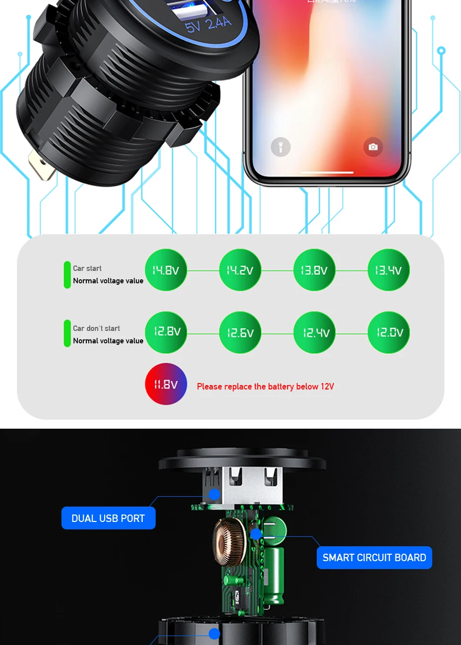 Моднявка = ckeditor Параметры: Номинальное напряжение: 12-24 В Выход USB: DC 3,5-6,5 в/3A, 6,5-9 В/2A, 9-12 В/1.5A Максимальная мощность: 36 Вт (18 Вт каждый) Материал: медь + АБС-пластик Рабочая температура: от-40 до 70 ℃ Светодиодный индикатор: синий светильник Особенности: сенсорный выключатель Широкое применение: автомобили, мотоциклы, квадроциклы, внедорожники, UTVs, лодки и т. Д.; Многоцелевые: питание для мобильных телефонов, планшетов, GPS и других usb-устройств; Примечание: некоторые мобильные телефоны не поддерживают быструю зарядку, например, iPhone. И они адаптируются для нормальной скорости зарядки. Внимание: 1. "+" является положительным и "-" отрицательным. 2. Для транспортных средств, Это Передано, чтобы получить питание от предохранителя, в то время как для мотоцикла, лучше подключить к проводам ключевого переключателя. 3. Светодиодный светильник появится после подключения элемента к батарее. Особенности: 【Быстрая зарядка 3,0 USB Outlets】 двойной QC 3,0 автомобильные розетки насос из 36 Вт всего, можно заряжать два устройства одновременно со скоростью QC3.0 и зарядкой от 0 до 55% за 35 минут; обеспечивает 4-кратную скорость зарядки совместимых устройств. 【Включение/выключение сенсорного переключателя разработан с сенсорными переключателями ВКЛ/ВЫКЛ для управления питанием, чтобы эффективно предотвратить отток энергии, сэкономить энергию и продлить срок службы продукта и оборудования. Кроме того, синие светодиодные лампы позволяют легко найти в темной среде и позволяют людям проверить, является ли соединение успешным. 【Широкая Совместимость 】 подходит для автомобиля 12-24 В, лодки, моря, мотоцикла, ATV, RV и т. д. Этот блок питания 12 В/24 В подходит для зарядки iPhone, Samsung, Xiaomi, iPad, планшетов android, power banks, контроллеров видеоигр, спортивных часов и т. д. (★★★Примечание: серия iPhone не поддерживает быструю зарядку, зарядка iPhone является нормальной скоростью.) 【Супер высокое качество 】используется специальный материал, высокая термостойкость, низкая термостойкость, также обладает антиогнестойкими свойствами, что делает его высоким стандартом безопасности. Защита от перегрузки по току и короткого замыкания для обеспечения безопасности зарядки, защиты ваших устройств. 【Простая установка 】 qidoe 12V USB Автомобильные розетки легко устанавливается. "+" ДО положительного полюса, "-" до отрицательного полюса. Посылка включает в себя: 1 Новое Зарядное устройство USB QC 3,0, 1 провод 23,6 дюйма, 1 Предохранитель 10A. Если вам не нужно использовать, вы можете покрыть корпус, водонепроницаемый и пылезащитный. Посылка включает в себя: 1/2 x Абсолютно Новый QC 3,0 USB разъем зарядного устройства; 1/2x23,6 дюйма провод; 1/2 x 10A предохранитель
