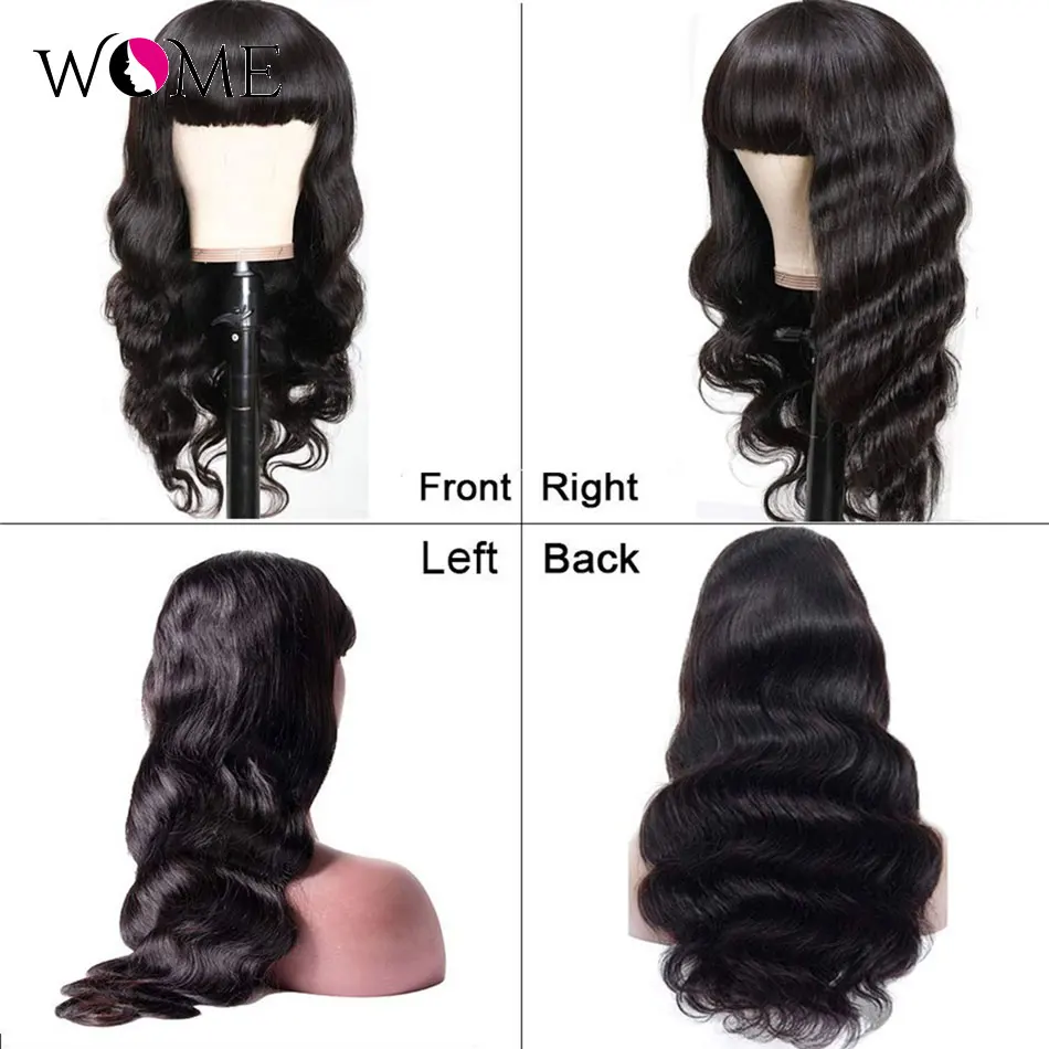 Женские парики из натуральных волос с челкой, без клея, полностью машинный парик, бразильские волнистые парики, натуральные человеческие волосы, парики для чернокожих женщин