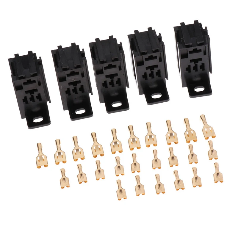 *5pcs 60AMP 5-Pin Car Automotive Relay Socket with 25pcs Copper Terminals