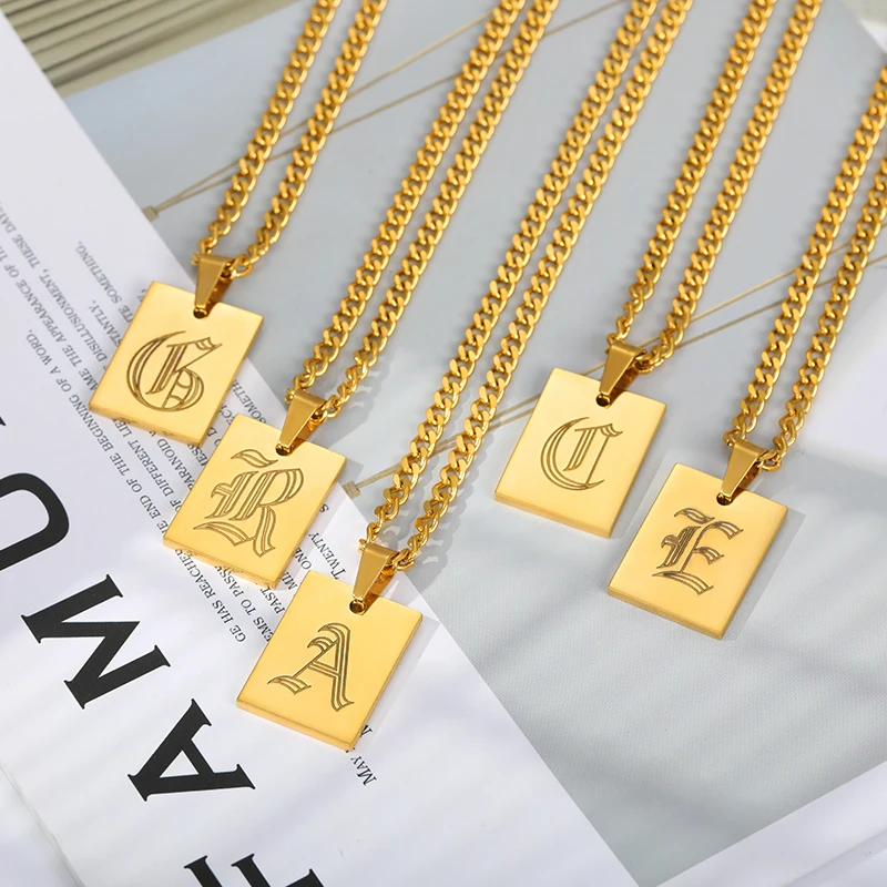 Оригинальные ожерелья с буквой для женщин золотое ожерелье из нержавеющей стали ожерелье с буквами старого английского шрифта женское колье