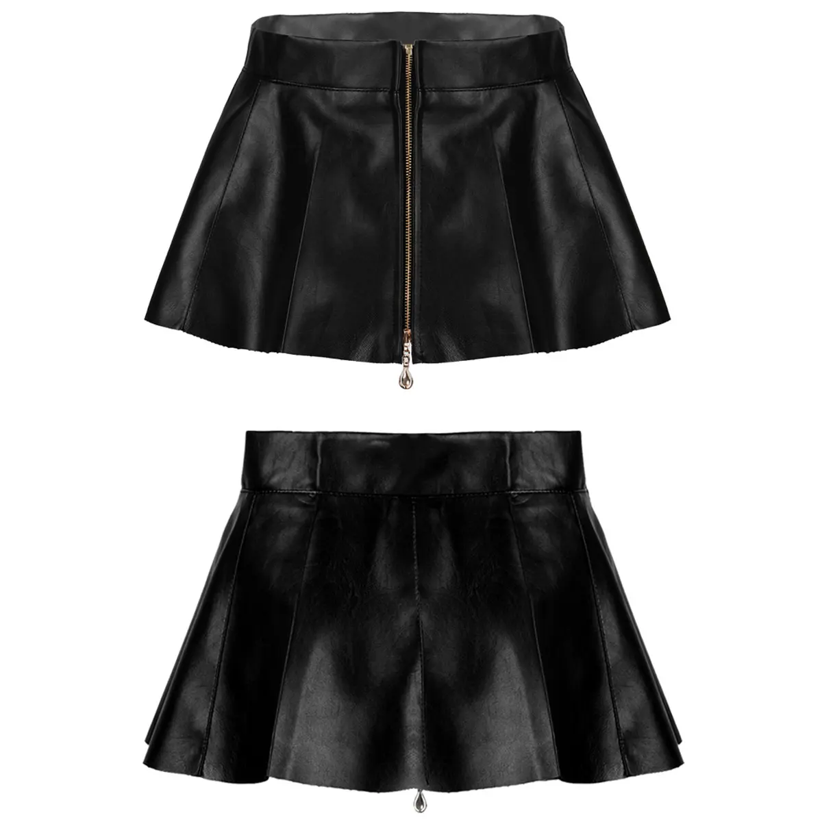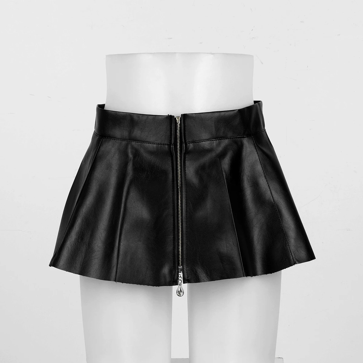 Женская модная плиссированная мини-юбка из искусственной кожи, застежка на молнию спереди.