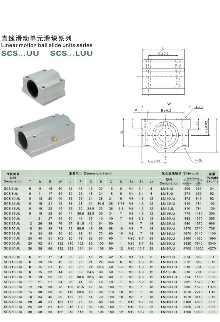 SC8/10/12/16/20/25/30/35/40/50UU SCS8/…LUU | SK8 SK10 SK12 SK13 SK16 SK20 SK25 SK30 | linear shaft set | Diameter 12/16/17/18/19/20/25/30/35/40/50mm Length100-1150mm |