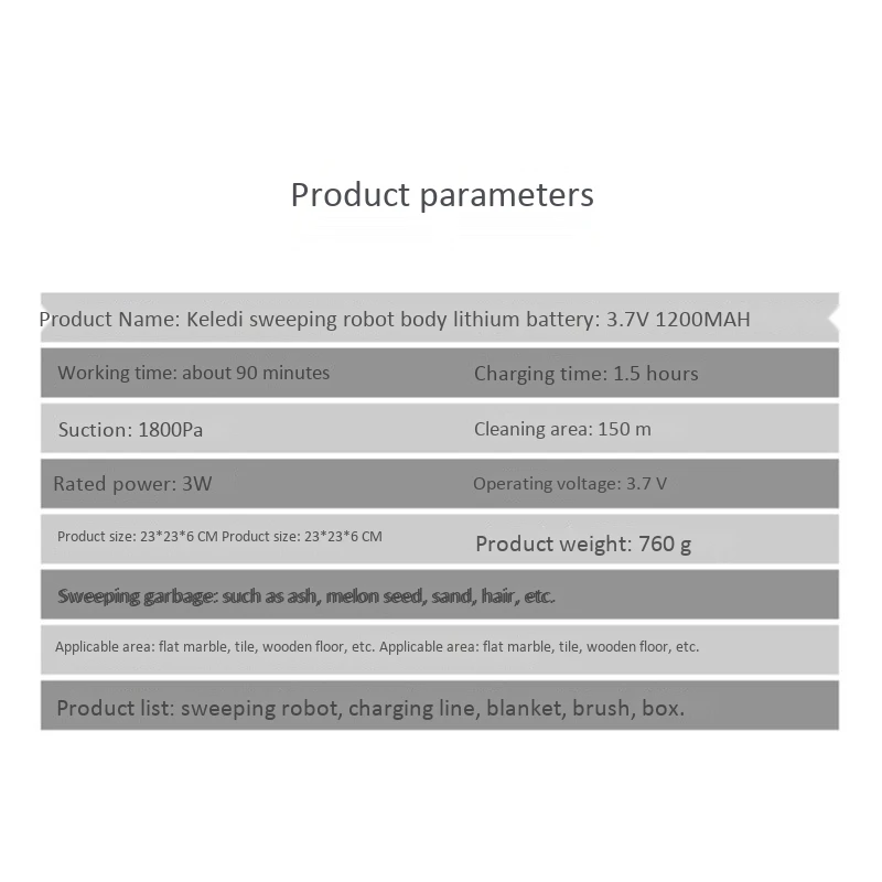 Функция: Запуск одной кнопкой, ing, mopping, пылесос, зарядка через USB, универсальное вождение, автоматическое Предотвращение препятствий, защита от падения, низкий уровень шума, интимное, низкое повторение, высокий охват.