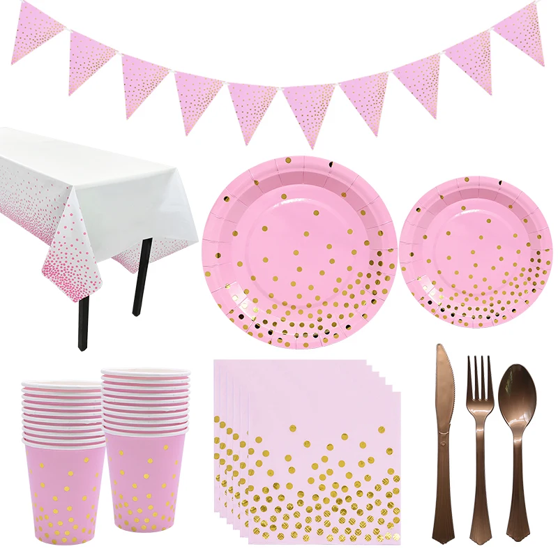 61 шт./компл. одноразовая тарелка в Золотой горошек для вечеринки/салфетка для взрослых с днем рождения, свадьбы, рождественской вечеринки, домашний декор